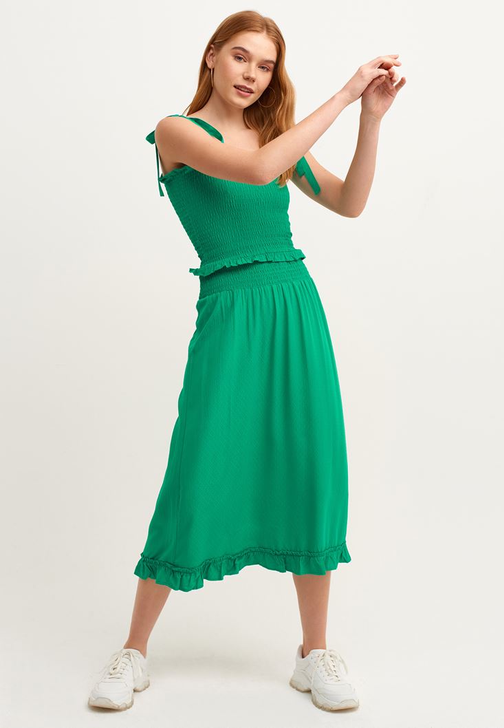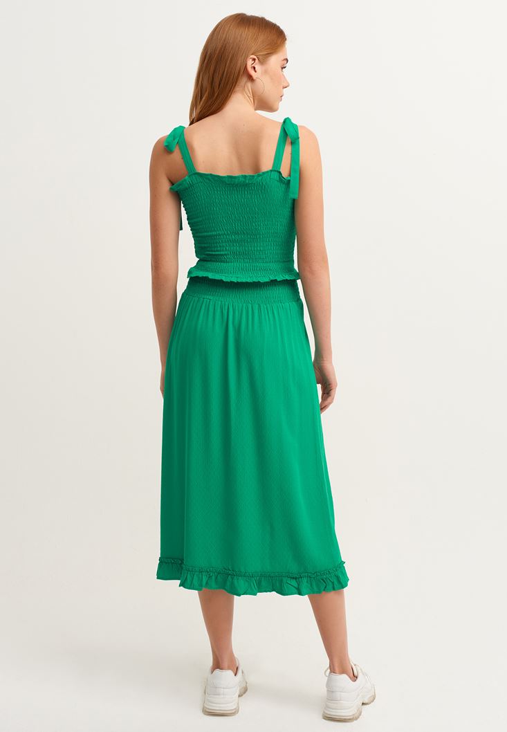 • Bayan Yeşil Beli Gipeli Midi Etek