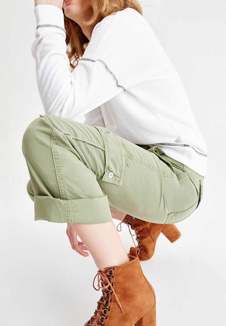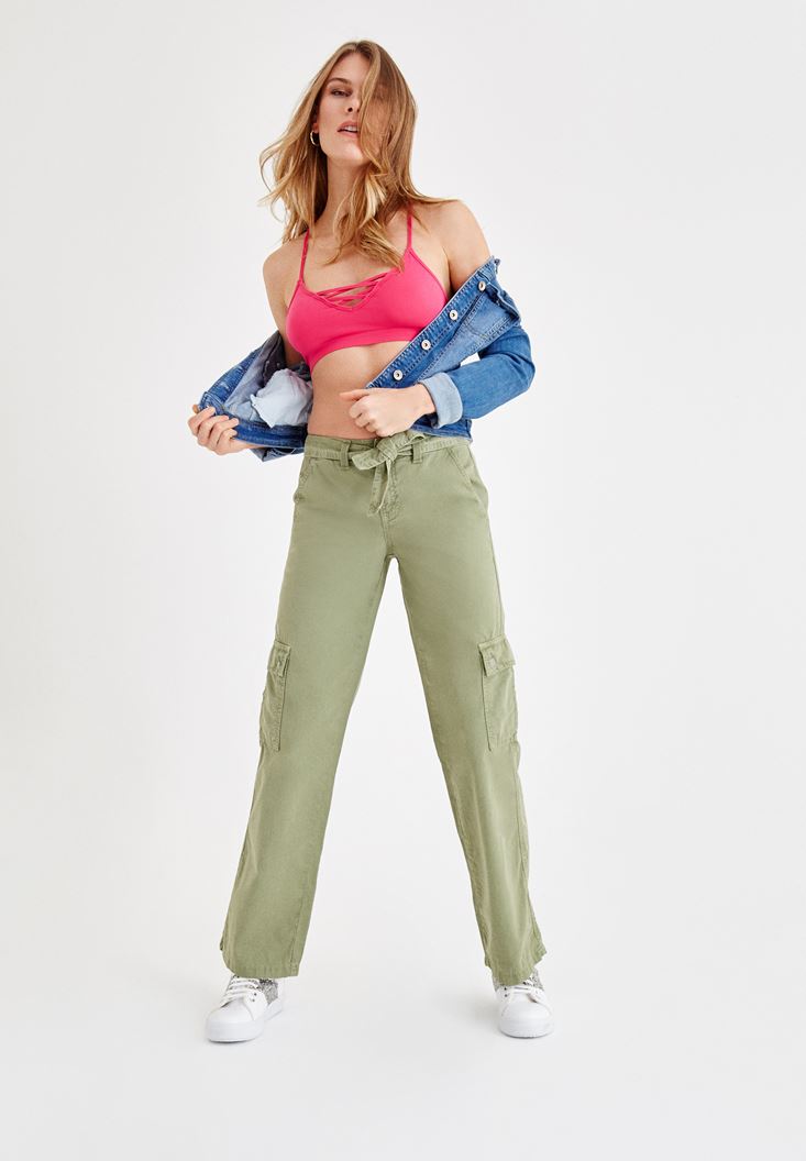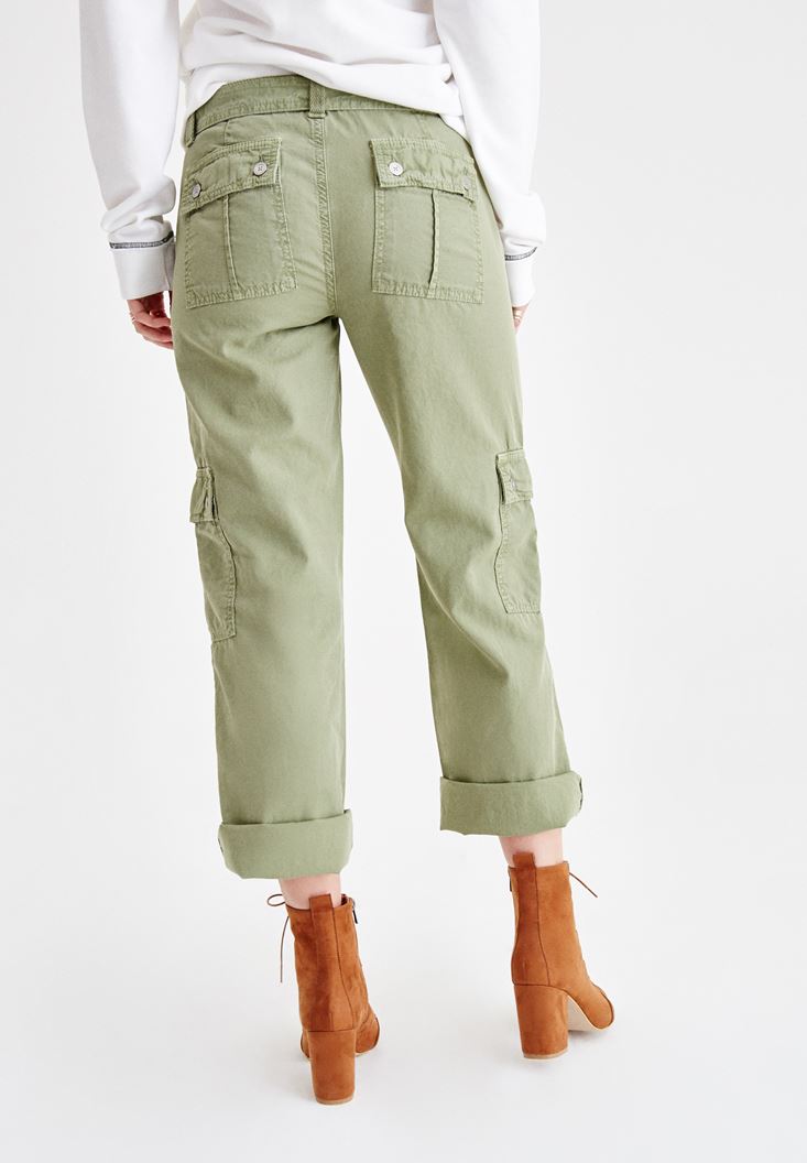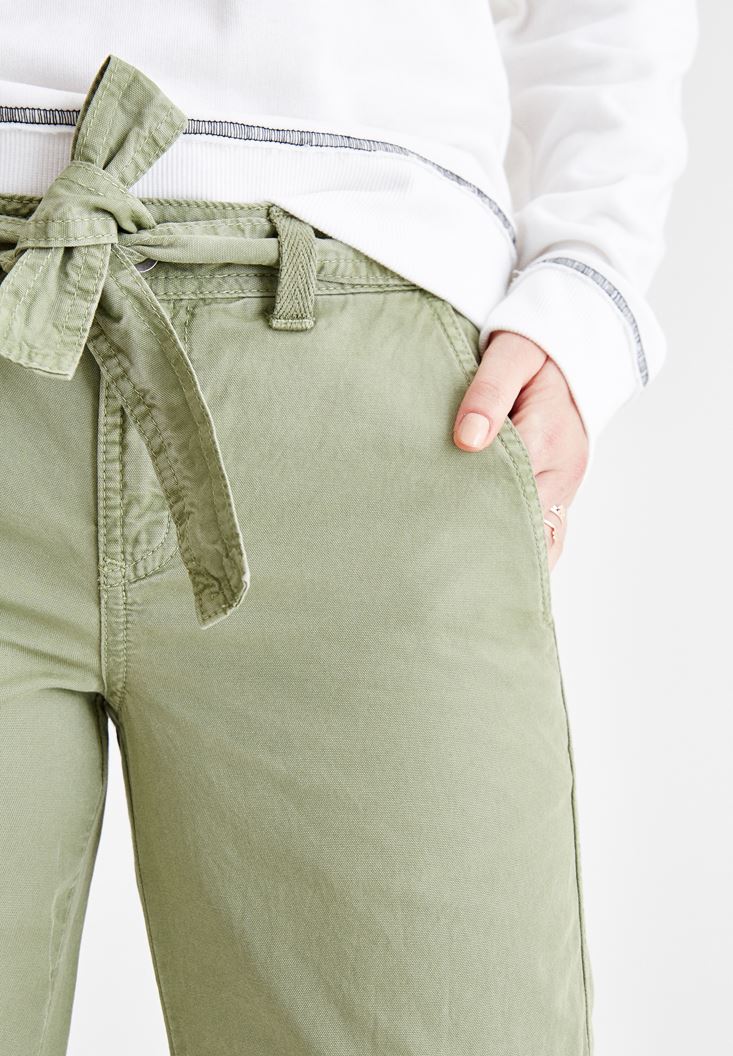 Yeşil Beli Kemerli Kargo Pantolon