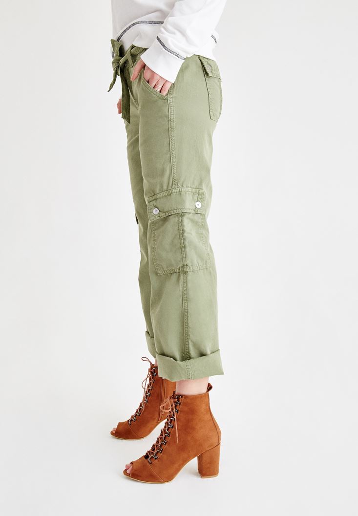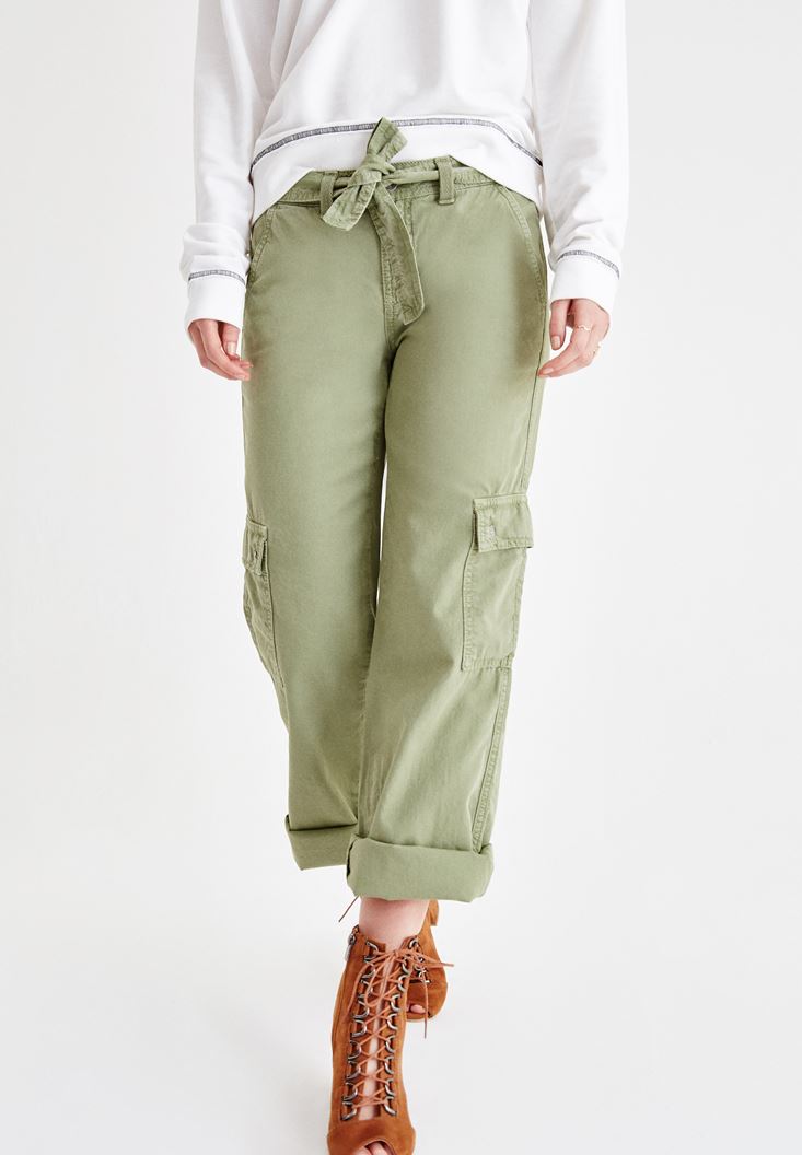 • Bayan Yeşil Beli Kemerli Kargo Pantolon