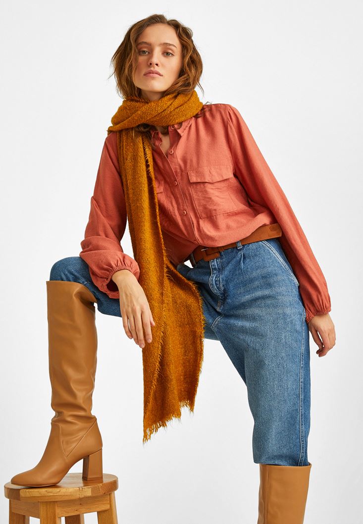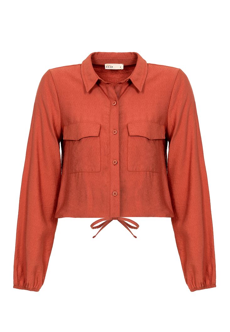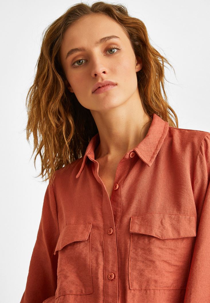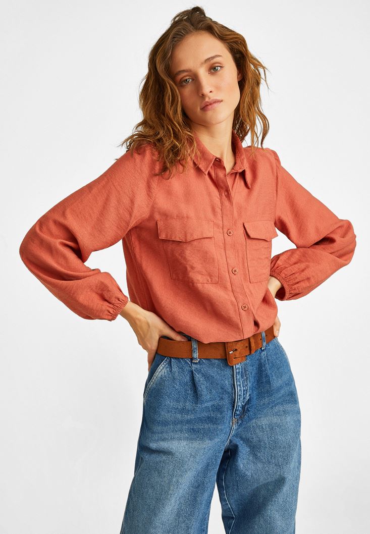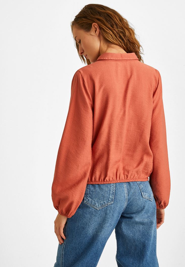 • Bayan Kiremit Beli Lastik Detaylı Gömlek