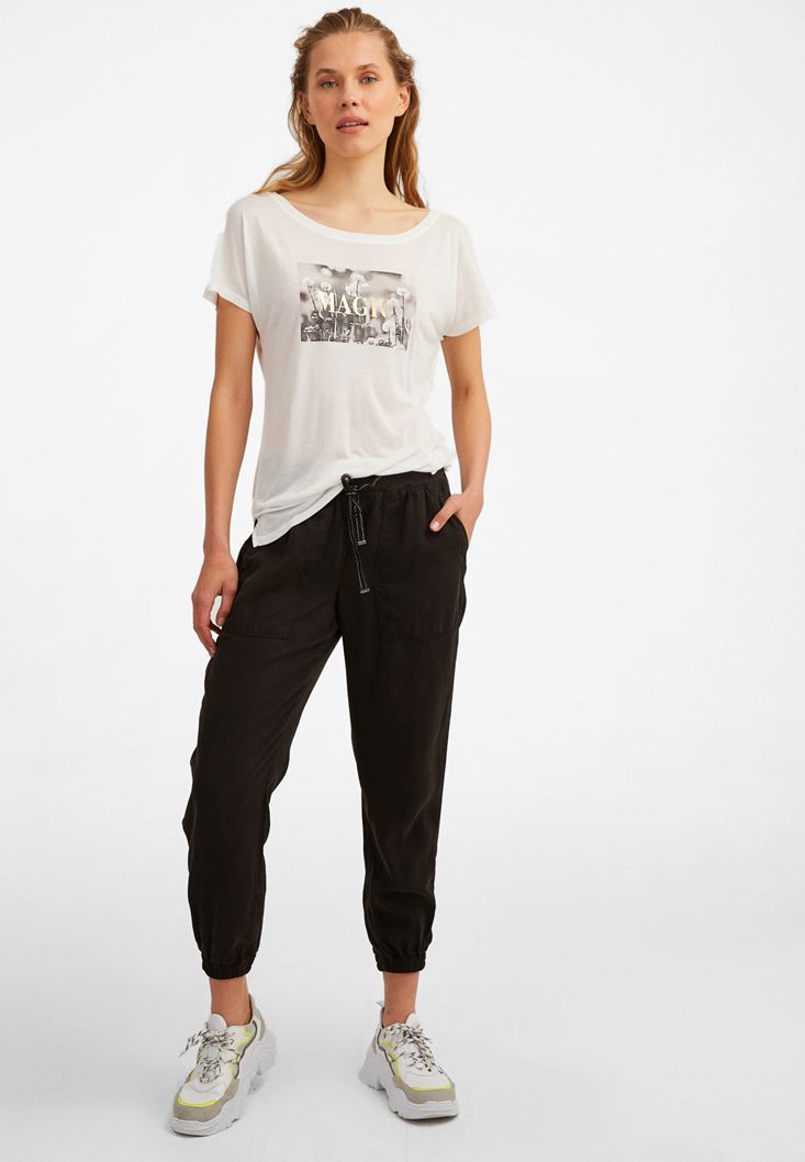 Beli Lastik Detaylı Jogger Pantolon modeli, Lyocell içerikli dokusu sayesinde yumuşacık ve nem transferi sağlayan dokusu eşliğinde sizlere sunuluyor. Jogger pantolon modeli, belden bağlamalı yapısı ve bileği saran paça detayı ile yeni sezona hareket katıyor. Askılı atletlerle veya oversize tişörtlerle kullanabileceğiniz kadın pantolon modeli sayesinde tarzınıza farklılık katabilirsiniz. Jogger pantolon modeli ile oluşturacağınız kombinleri sandaletlerle veya sneakerlarla tamamlayabilirsiniz. Oxxo'nun doğal içerikli dokularla ve hoş renklerle sizlere sunduğu kadın pantolon modelleri ile özgün detayları rahatlıklar yakalayabilirsiniz.