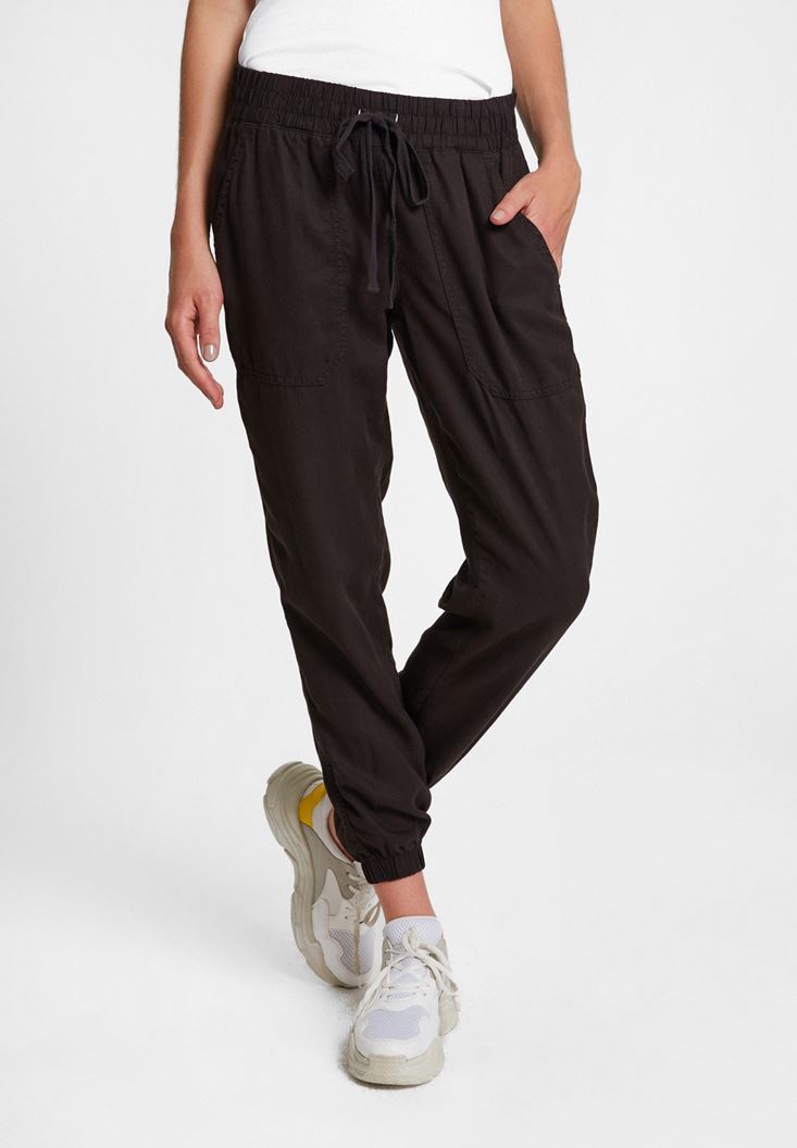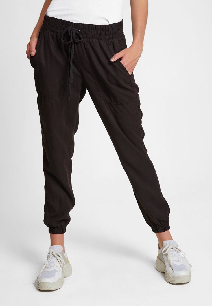 • Bayan Siyah Beli Lastik Detaylı Jogger ( TENCEL™ )