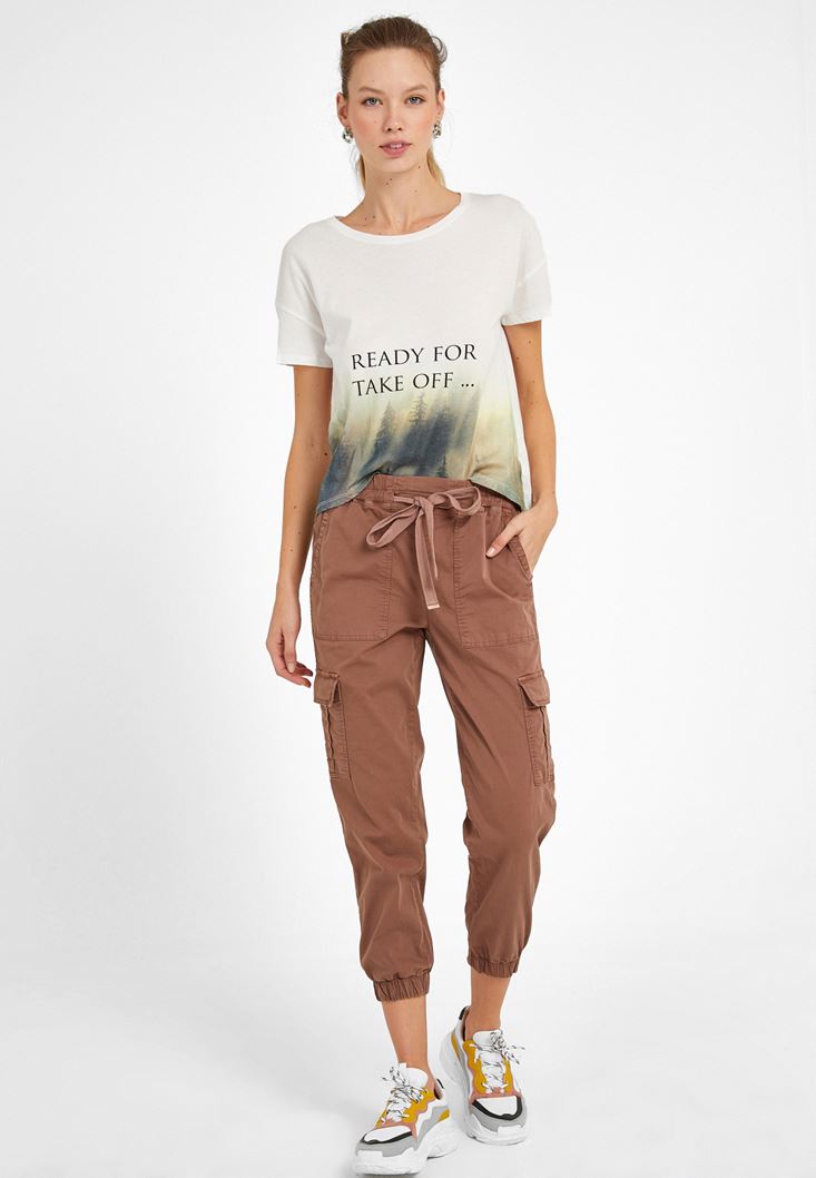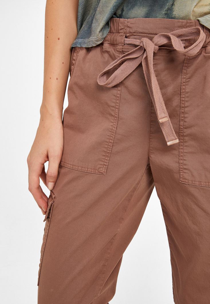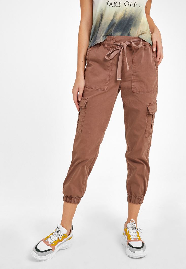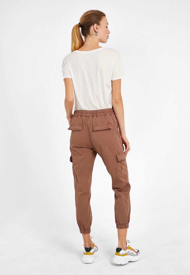 • Bayan Kahverengi Beli Lastik Detaylı Kargo Pantolon