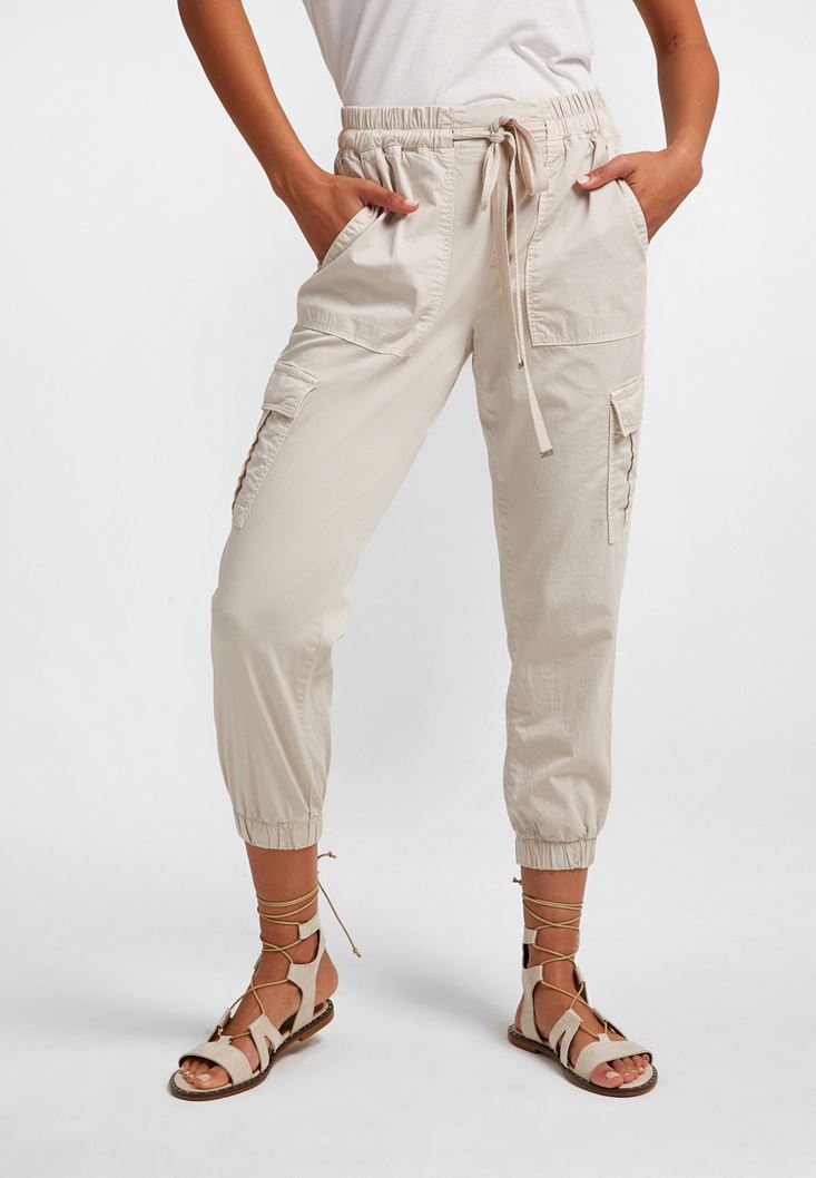 • Bayan Krem Beli Lastik Detaylı Kargo Pantolon