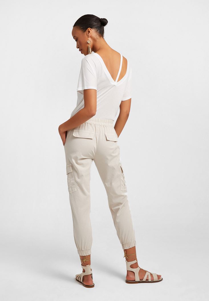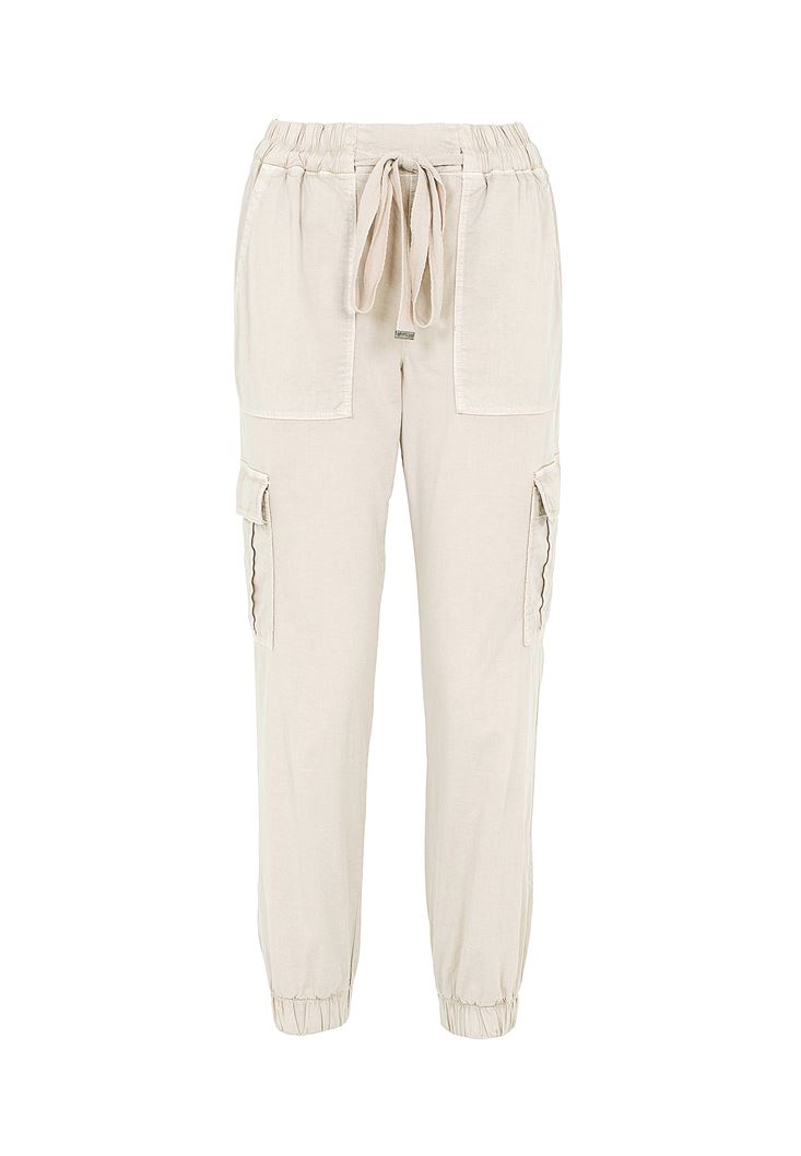 Krem Beli Lastik Detaylı Kargo Pantolon