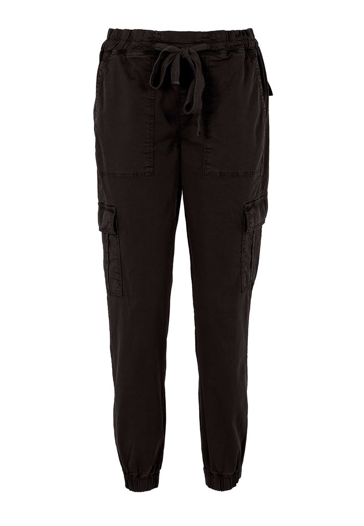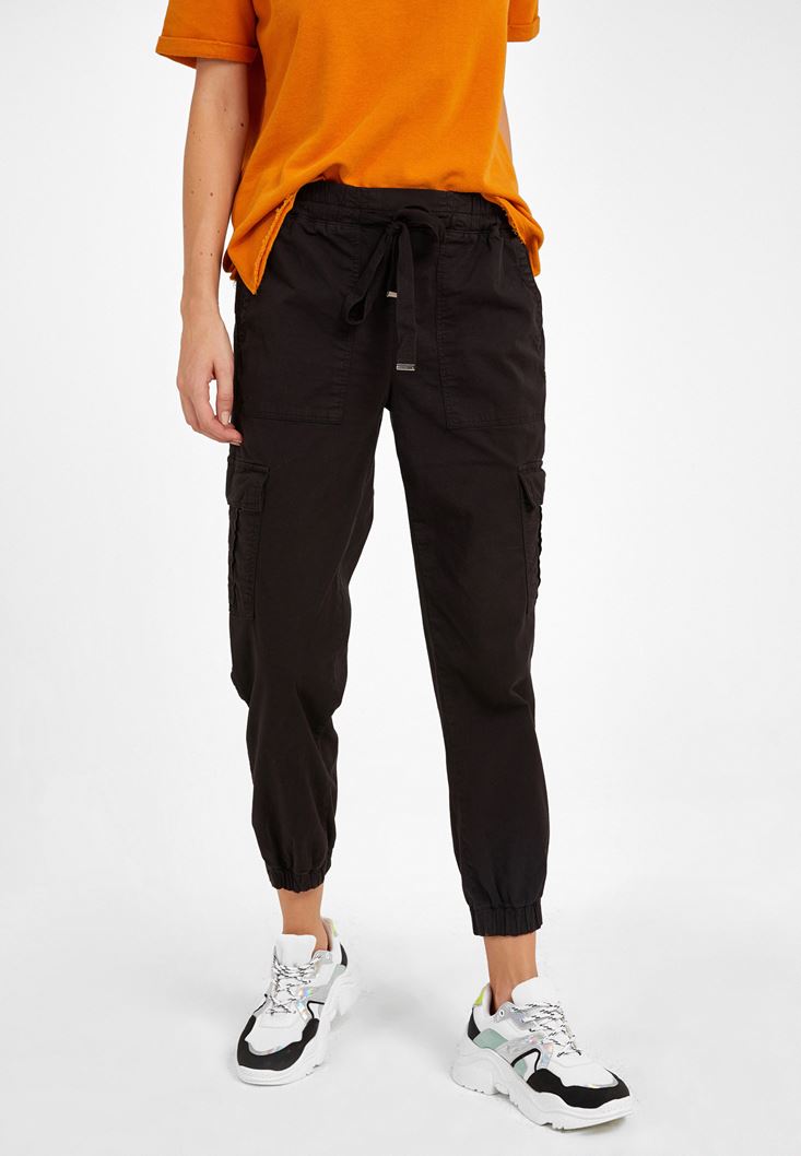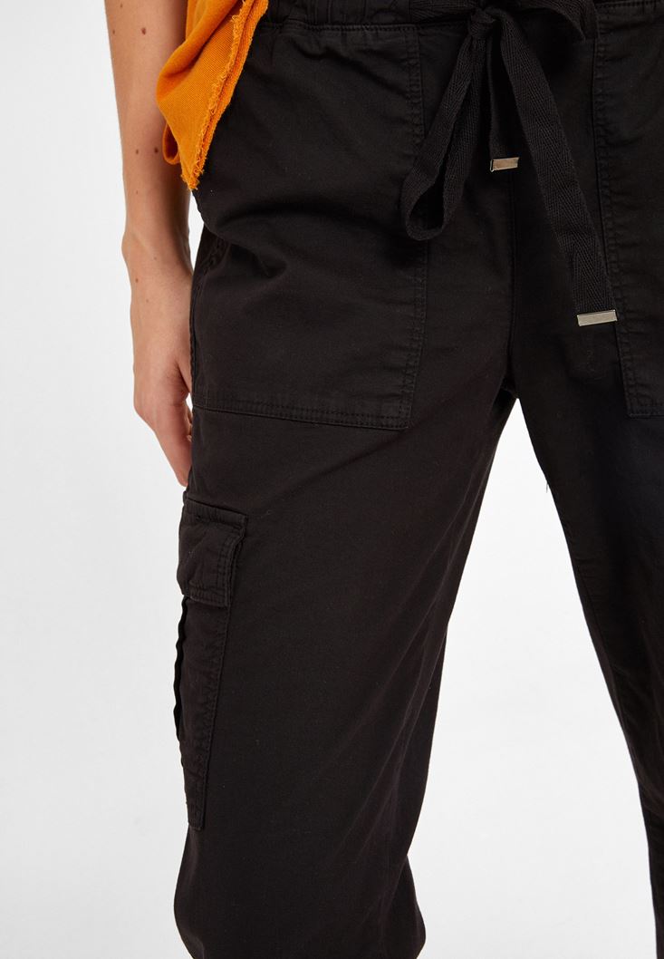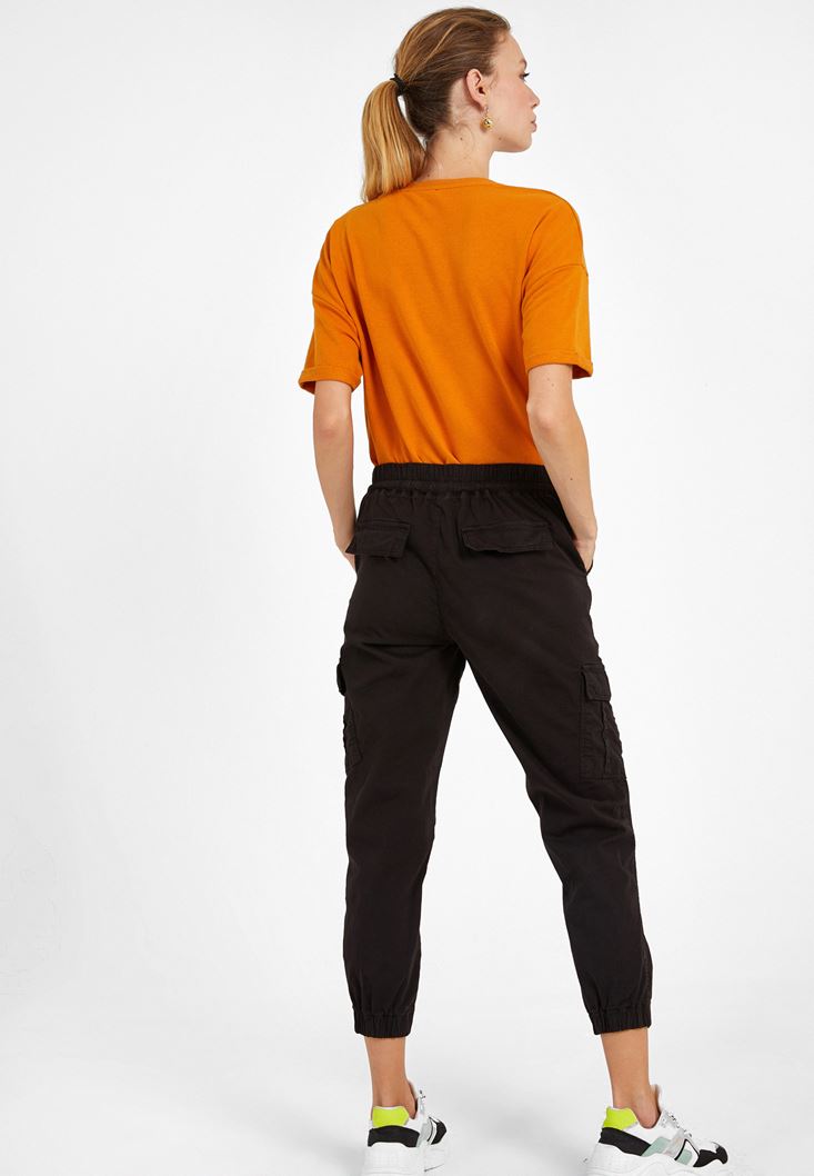 • Bayan Siyah Beli Lastik Detaylı Kargo Pantolon