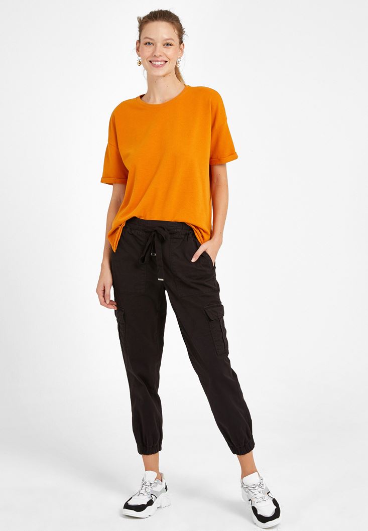 Beli Lastik Detaylı Kargo Pantolon modeli, pamuk içerikli yumuşak dokusu ve nefes alan kumaş yapısıyla sizlere sunuluyor. kadın pantolon modeli, jogger formu ve belden lastikli duruşuyla karşınıza çıkıyor. Kargo pantolon modeli, iki yanında bulunan cepleri ve geniş kalıbı sayesinde sizleri konforla buluşturuyor. Sokak modasında hem rahatlığı hem de güçlü görünümü bir arada bulabileceğiniz kadın pantolon modeli ile kombinlerinize sportif şıklık katabilirsiniz. Sweatler veya tişörtlerle uyumlu olabilecek beli lastikli pantolon modelini dolabınıza dahil edebilirsiniz. kadın pantolon modelini, sezon trendi olan yüksek taban sneakerlarla kullanabilirsiniz. Oxxo'nun rahatlık sunan detaylar ve hoş dokularla sizlere sunulan kadın pantolon modelleri ile kombinlerinizi tamamlayabilirsiniz.
