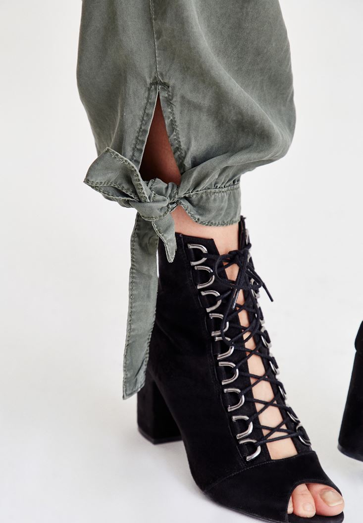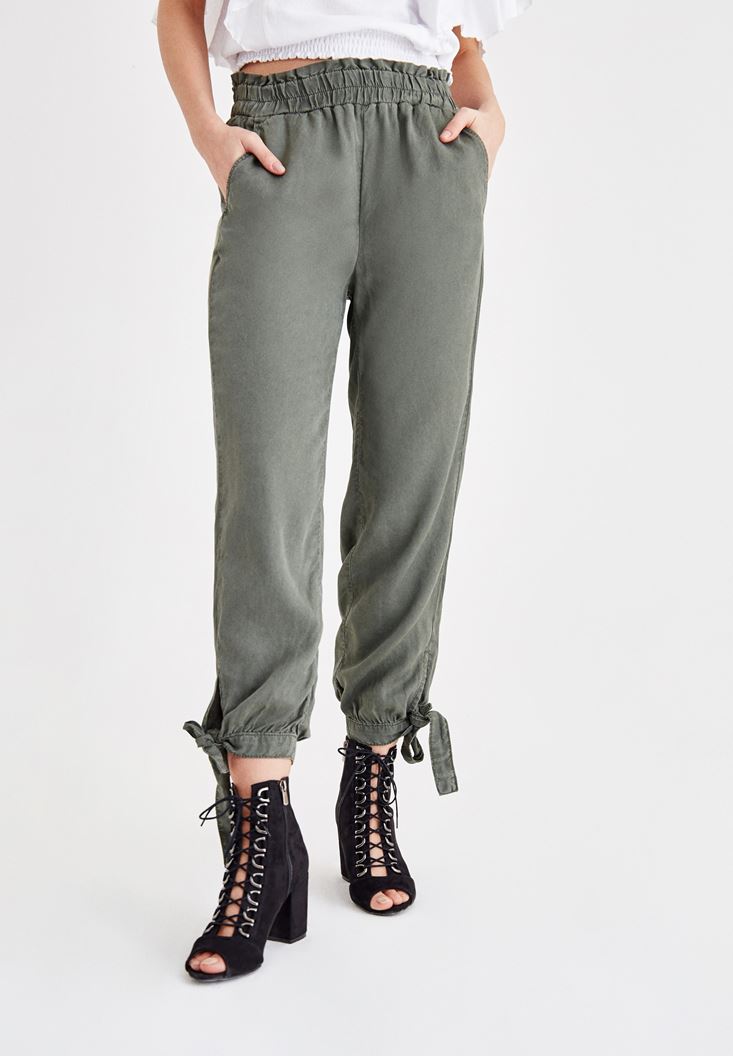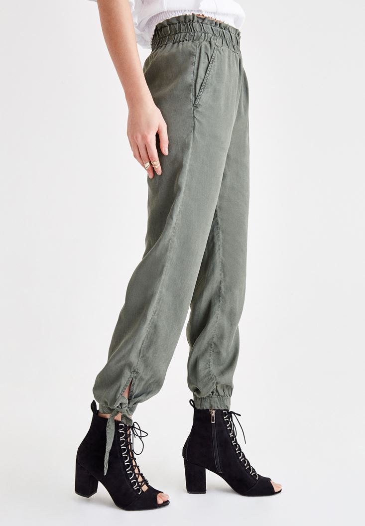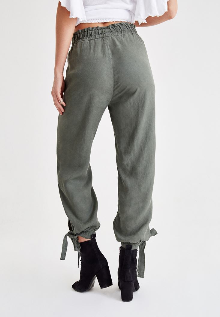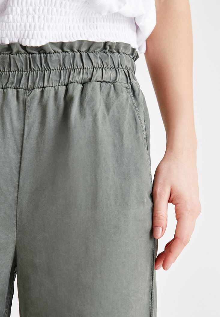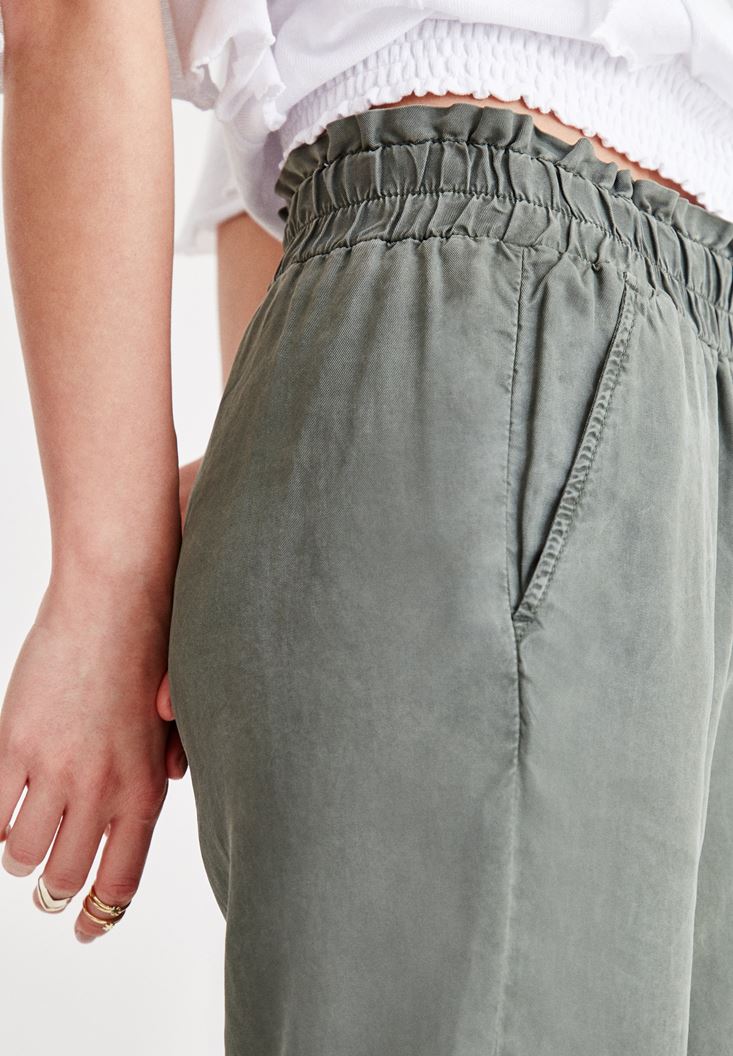 Yeşil Beli Lastikli Bilek Detaylı Pantolon ( TENCEL™ )