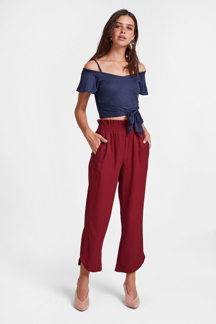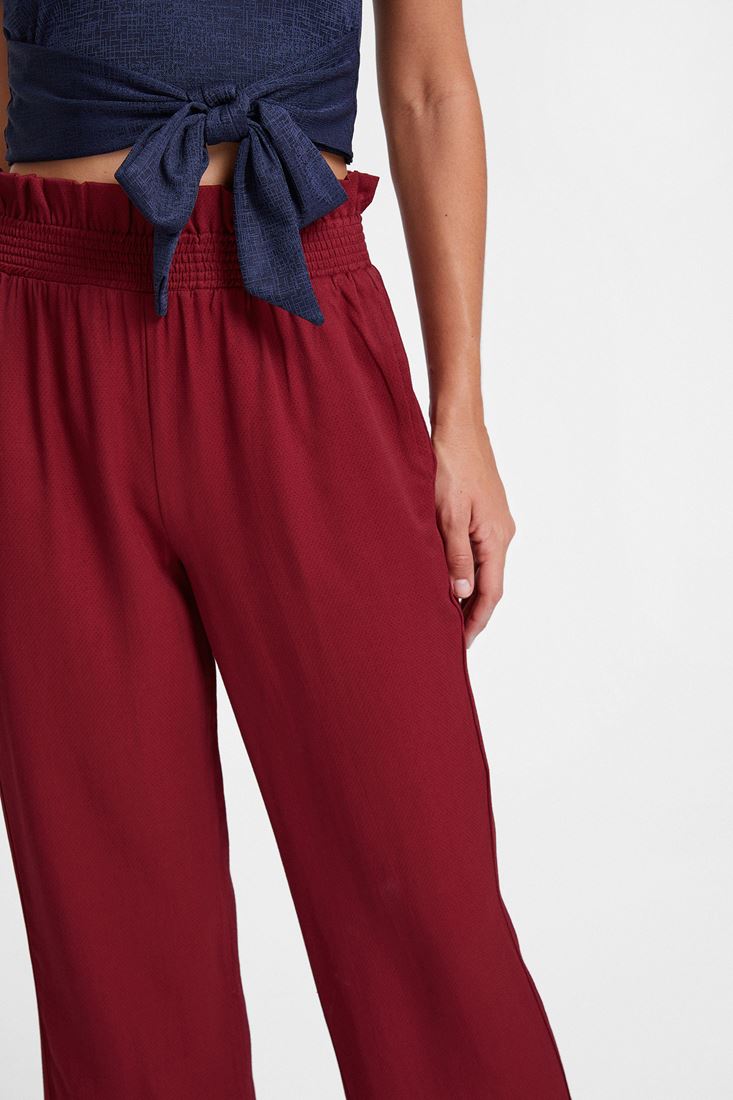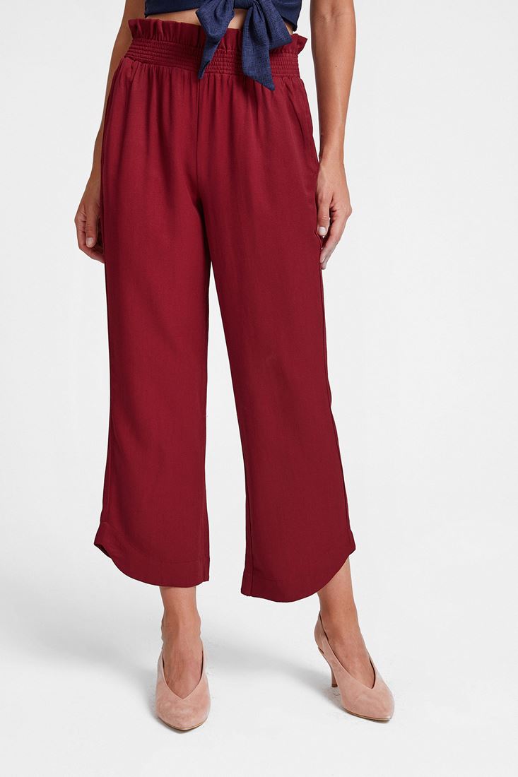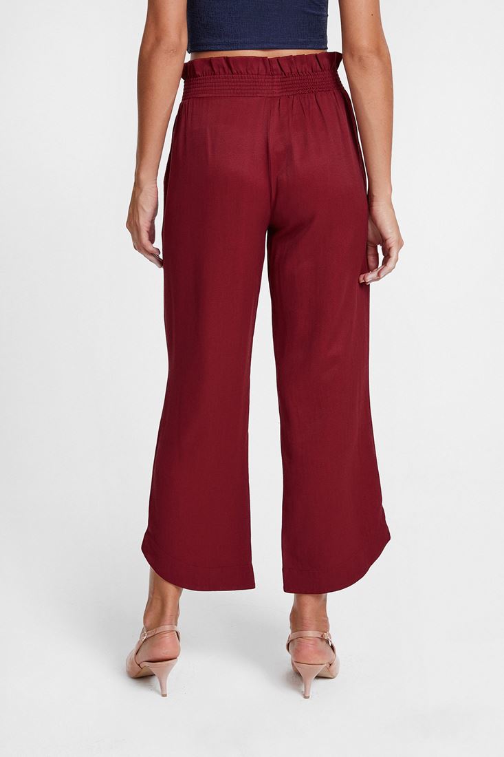 • Bayan Bordo Beli Lastikli Bol Pantolon