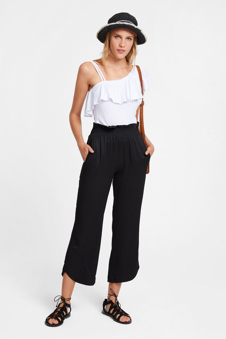 • Bayan Siyah Beli Lastikli Bol Pantolon