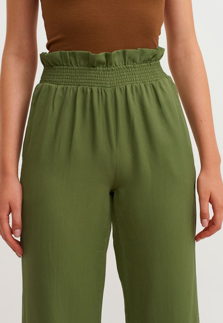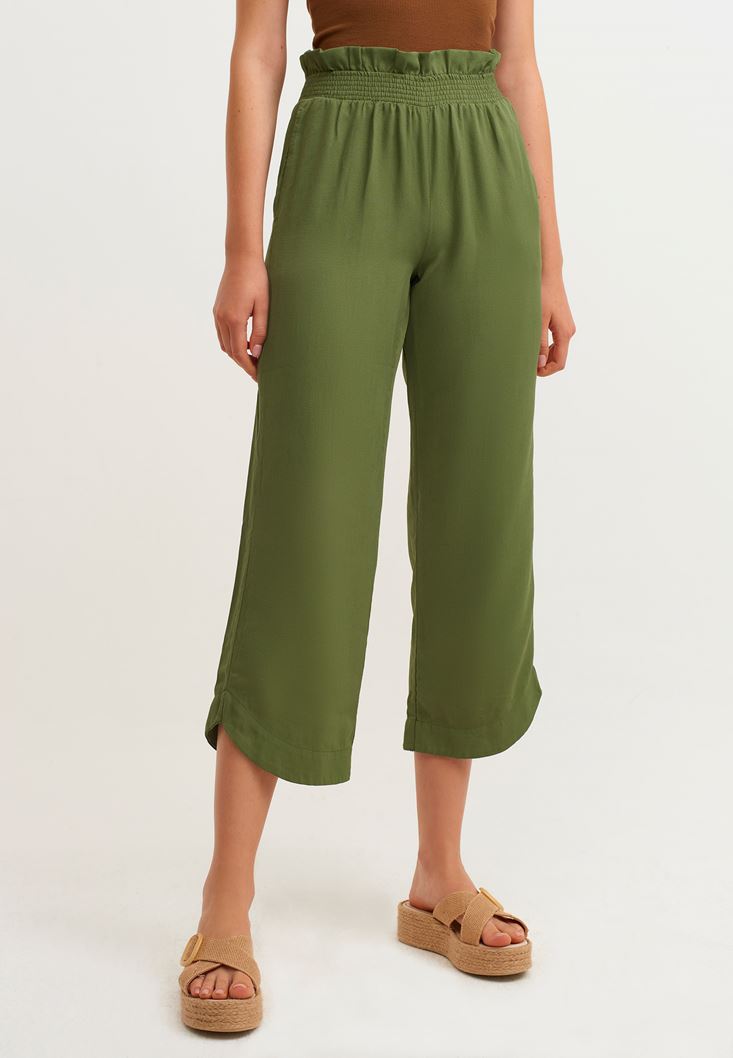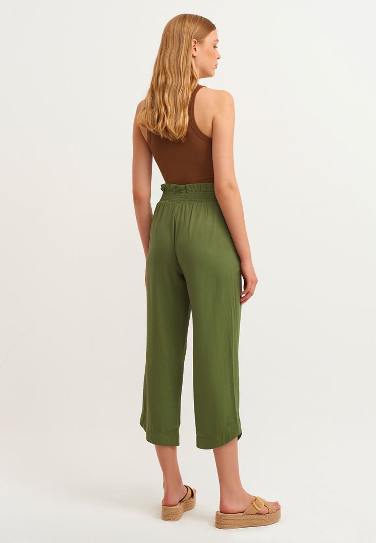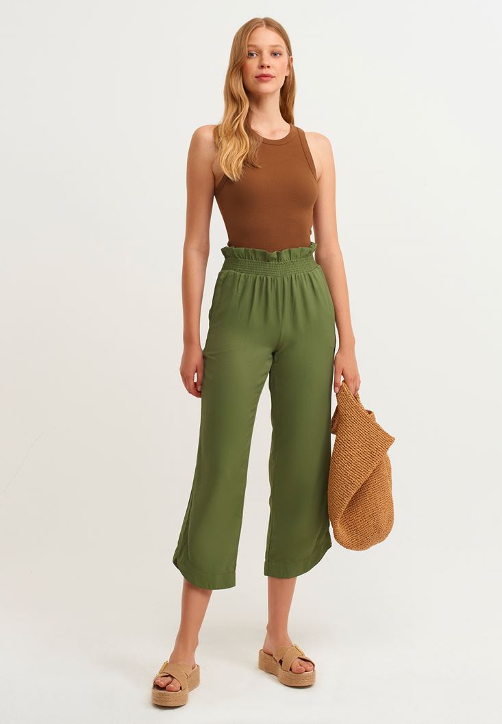 • Bayan Yeşil Beli Lastikli Bol Pantolon