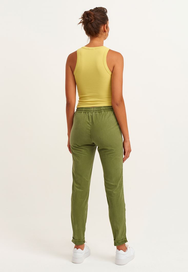 Yeşil Beli Lastikli Carrot-Fit Pantolon ( TENCEL™ )