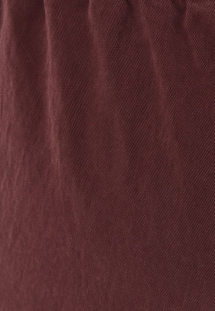 Tencel(Lyocell) ve pamuk karışımlı geri dönüştürülebilir doku, nefes alabilen anti bakteriyel kumaş, orta bel, bedenden uzak baggy fit, slim paça, beli lastikli ve bağcıklı, paçası katlanarak veya açık şekilde kullanılabilir, önü iki cepli.