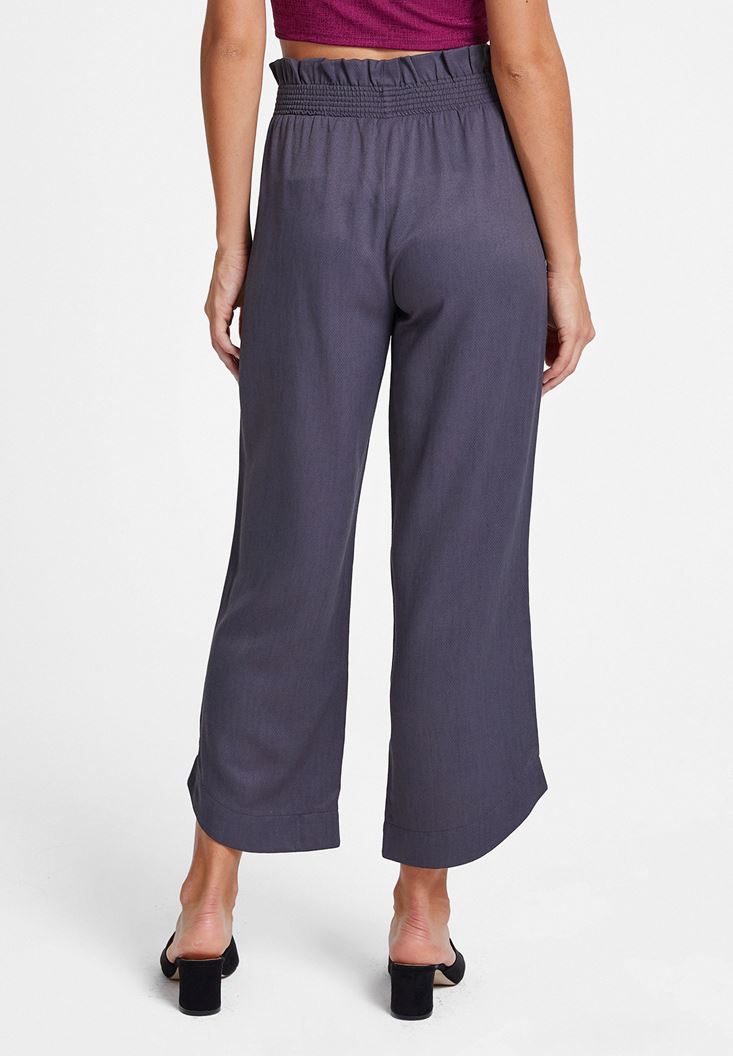 Gri Beli Lastikli Cep Detaylı Bol Pantolon
