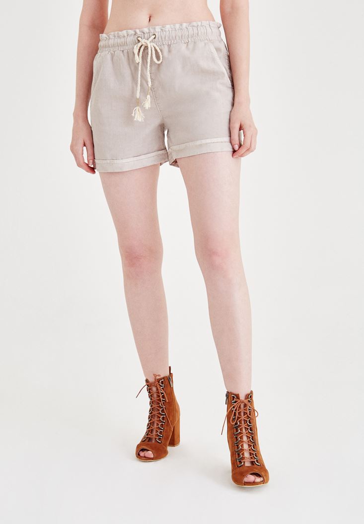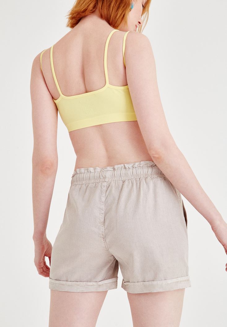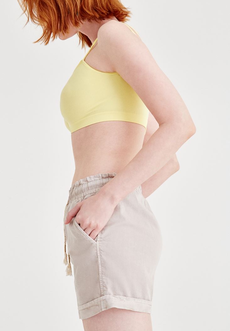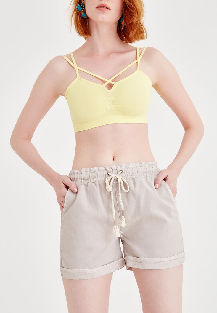 • Bayan Krem Beli Lastikli Cep Detaylı Mini Şort
