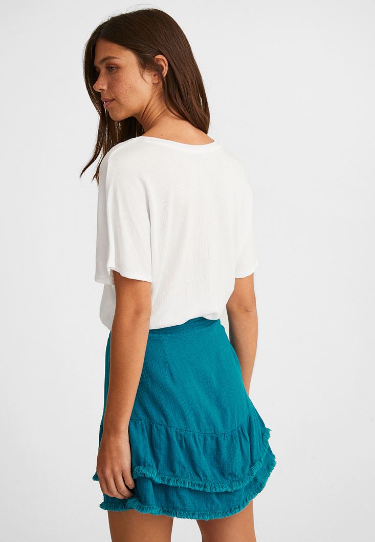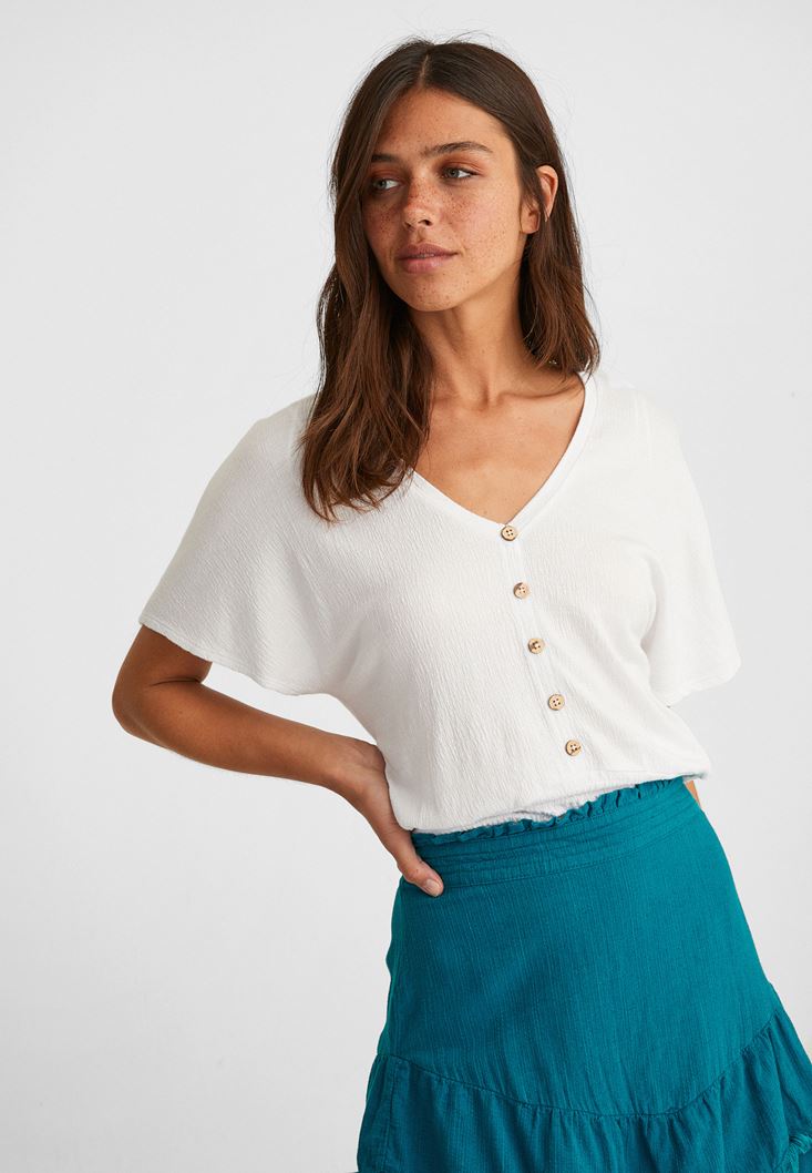 • Bayan Beyaz Beli Lastikli Crop Bluz