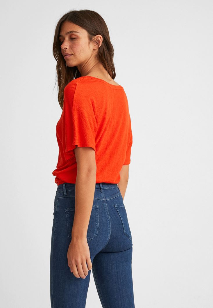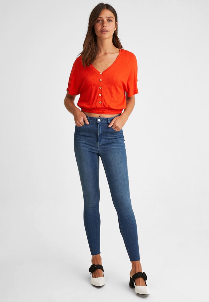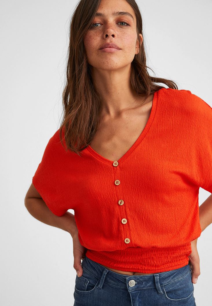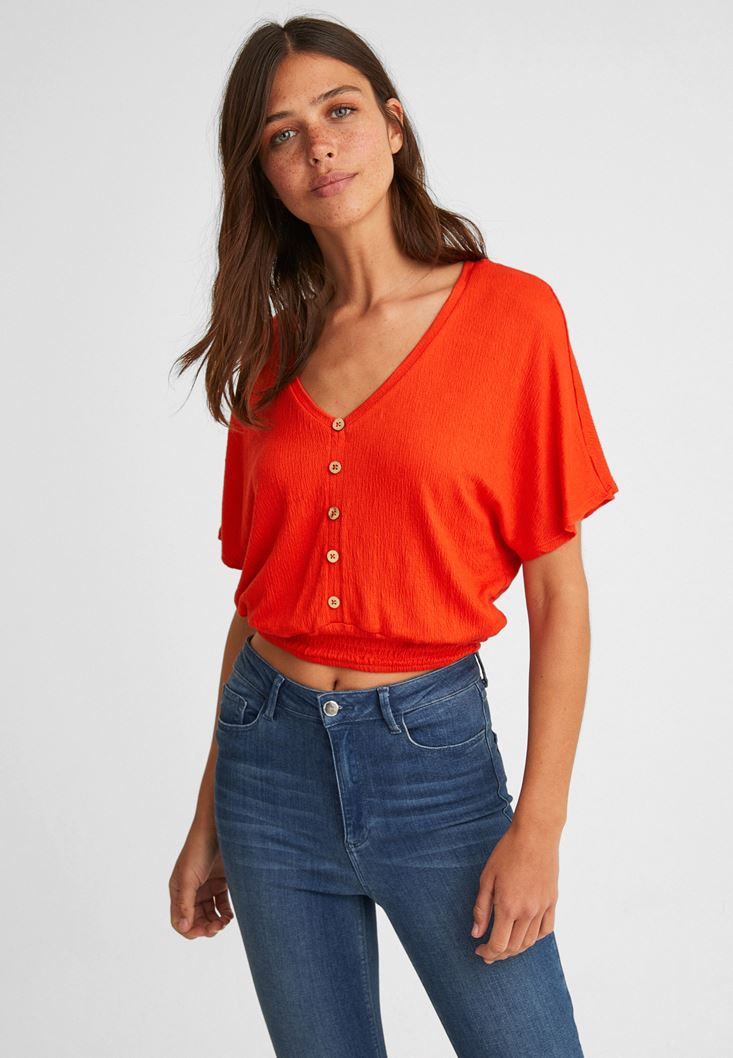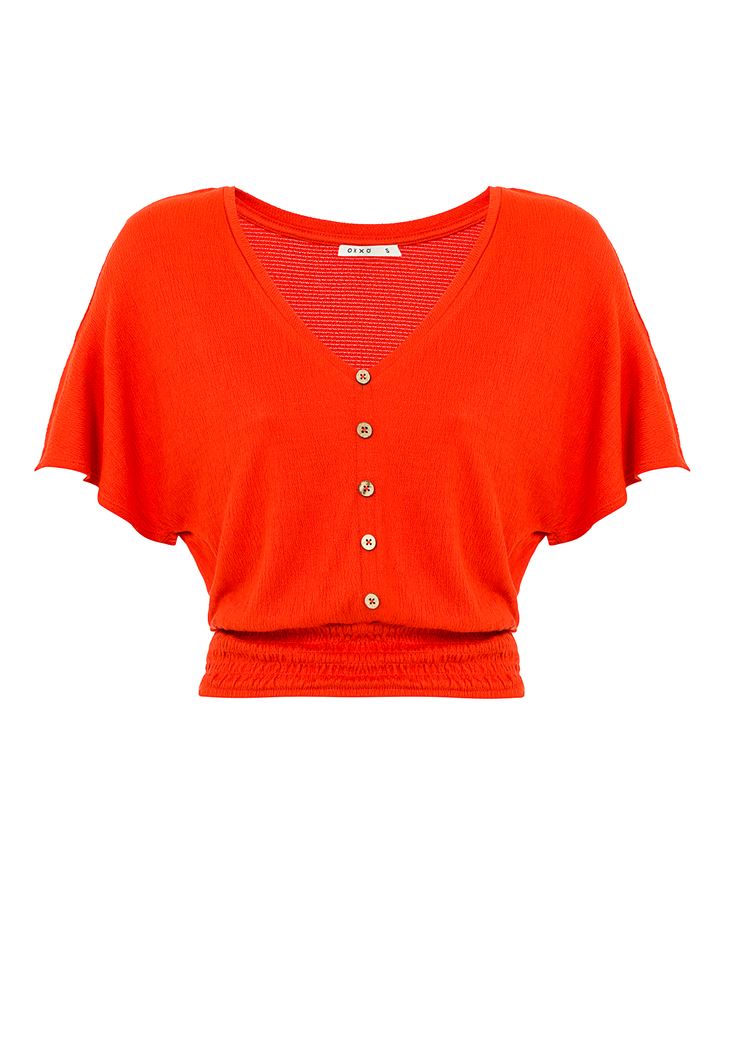 • Bayan Kırmızı Beli Lastikli Crop Bluz