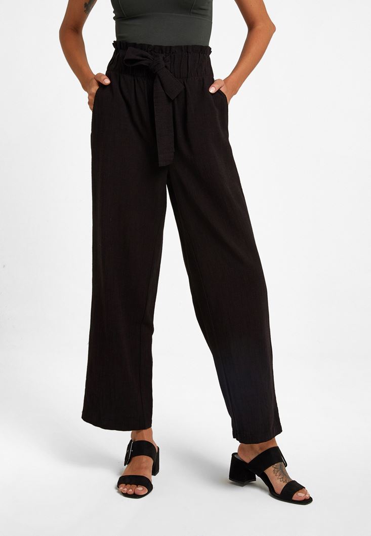 • Bayan Siyah Beli Lastikli Culotte Pantolon