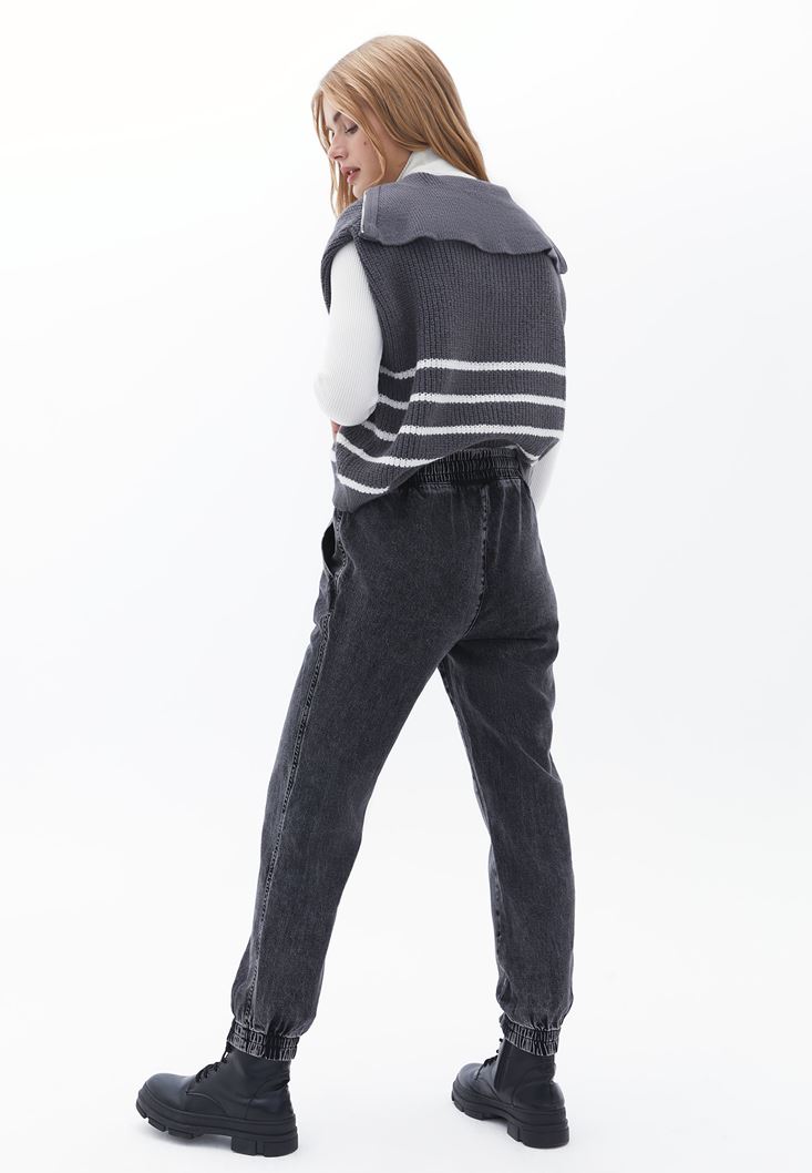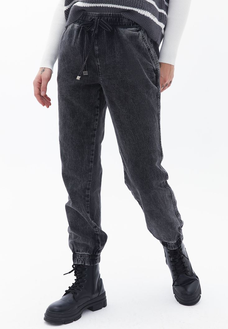 • Bayan Siyah Beli Lastikli Denim Jogger Pantolon