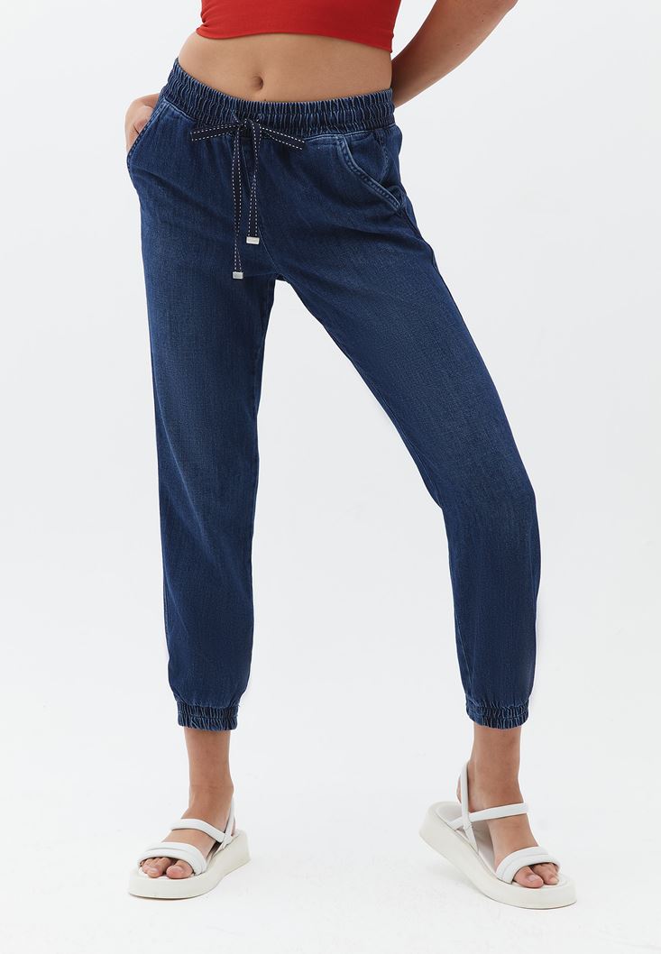 • Bayan Mavi Beli Lastikli Denim Jogger