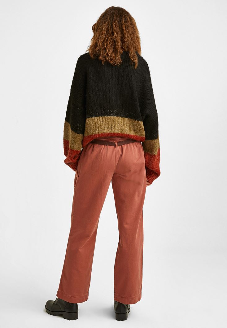 • Bayan Kiremit Beli Lastikli Düşük Bel Pantolon