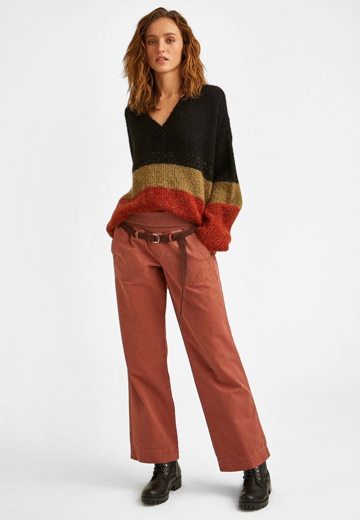 Kemerli Düşük Bel Pantolon modeli, pamuk içerikli hoş dokusu ve rahat kalıbı ile Oxxo'da sizlere sunuluyor. Kadın pantolon modeli, katlamalı bel yapısı ve kemerli görünümü ile yeni sezonda fazlasıyla dikkat çekiyor. Göz kamaştıran renklerle ve bol kalıbıyla karşınıza çıkan düşük bel pantolon modeli ile tarzınızı dilediğiniz gibi şekillendirebilirsiniz. Kadın pantolon modeli ile oversize kazaklar veya tişörtler kullanarak fark yaratabilirsiniz. Postallar veya sneakerlar ile rahatlıkla kullanabileceğiniz düşük bel pantolon modelini dolabınızın favorilerine ekleyebilirsiniz. Oxxo'nun yumuşacık dokularla ve benzersiz kalıplarla sizlere sunduğu kadın pantolon modelleri ile çok seveceğiniz kombinler yapabilirsiniz.