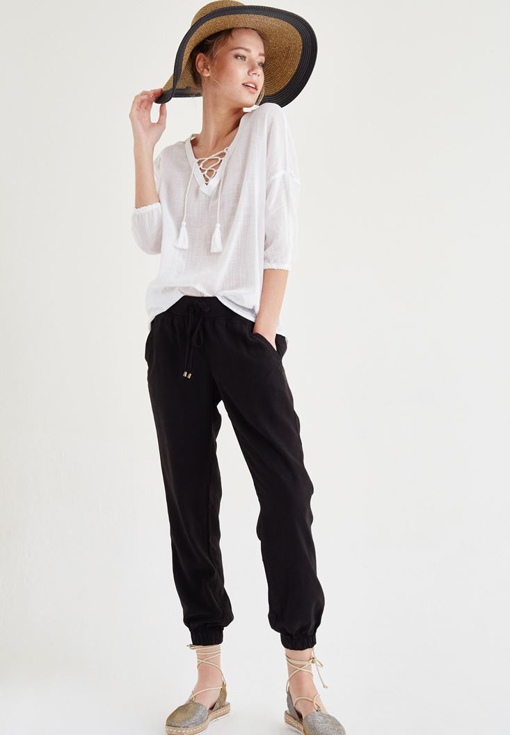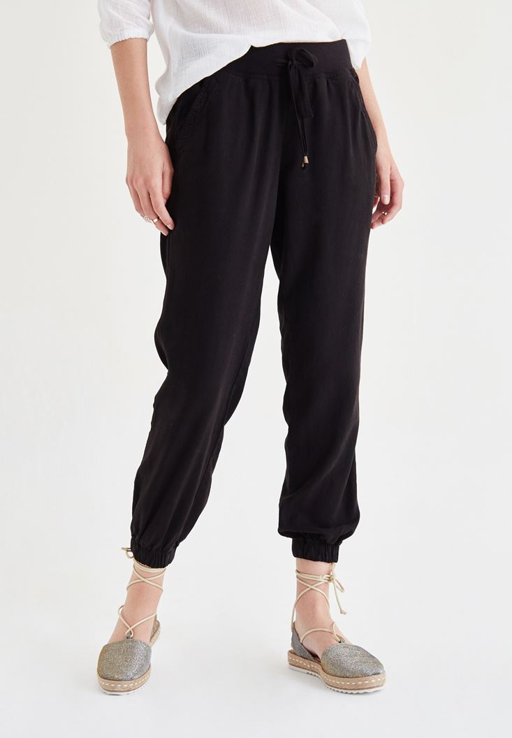 • Bayan Siyah Beli Lastikli Jogger Pantolon