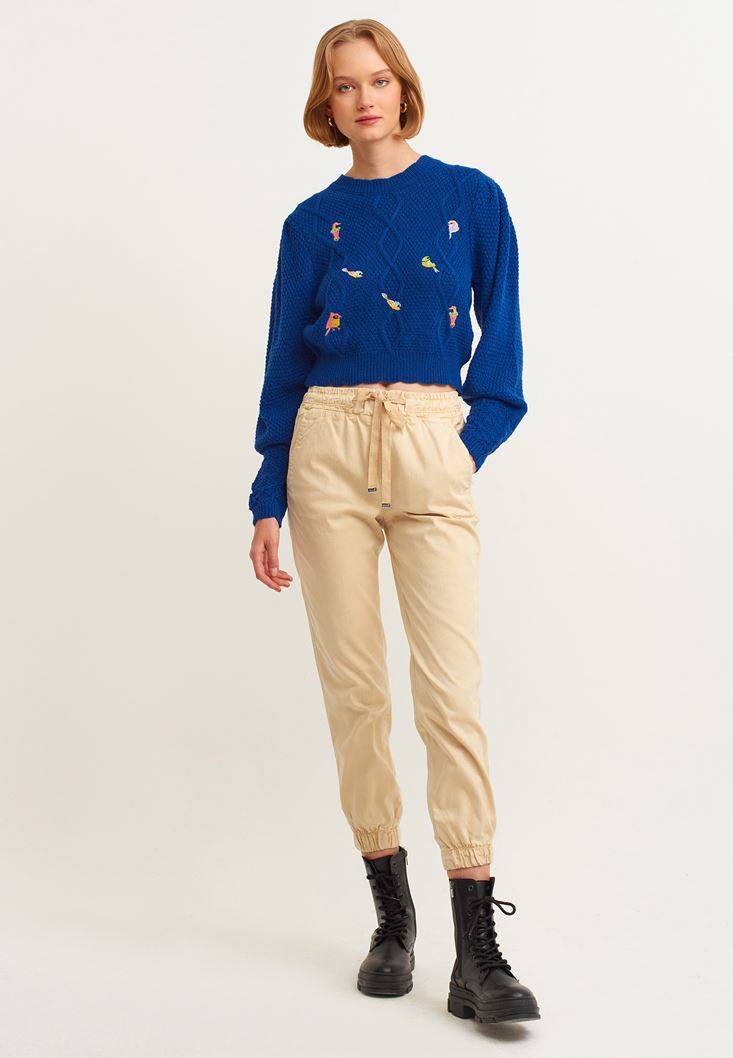 Tencel(Lyocell) ve pamuk karışımlı geri dönüştürülebilir içerik, anti-bakteriyel doku, yüksek bel, beli ve paçası lastikli, jogger paça, bedene yakın baggy-fit, beli bağcıklı, önü iki cepli.