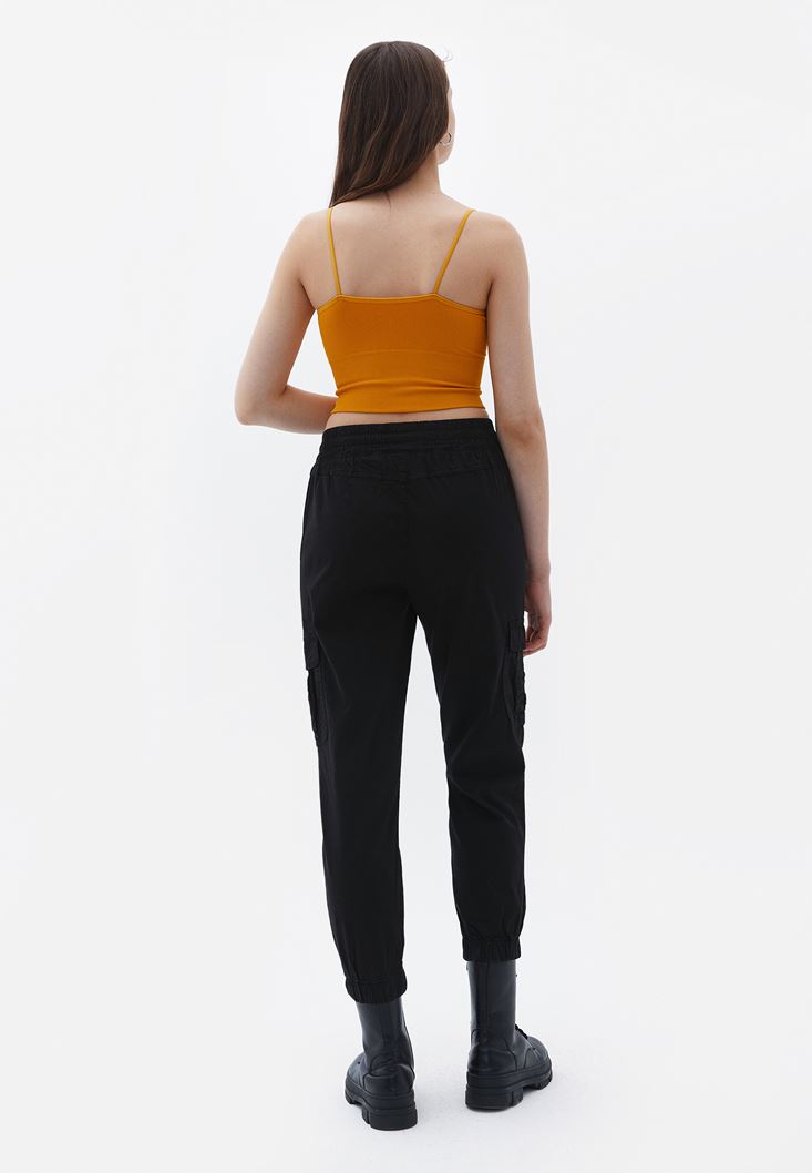• Bayan Siyah Beli Lastikli Kargo Jogger Pantolon