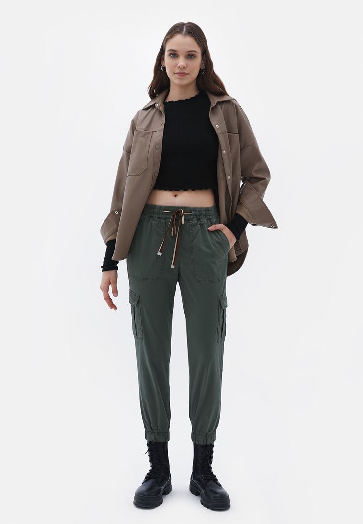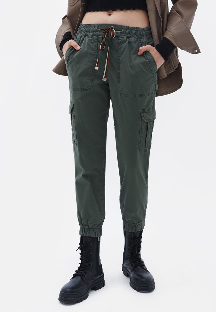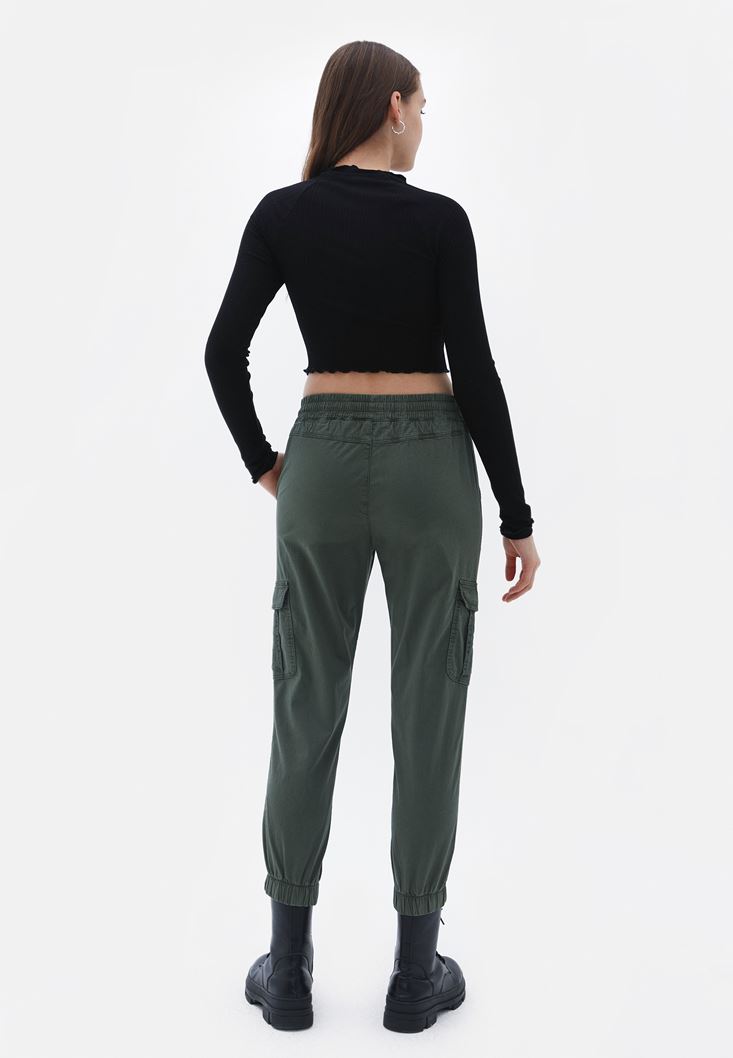 • Bayan Yeşil Beli Lastikli Kargo Jogger Pantolon