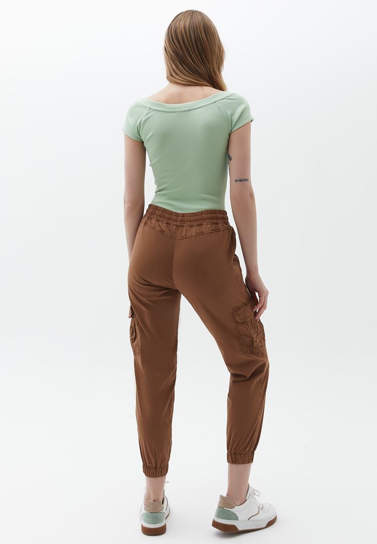 • Bayan Kahverengi Beli Lastikli Kargo Jogger Pantolon