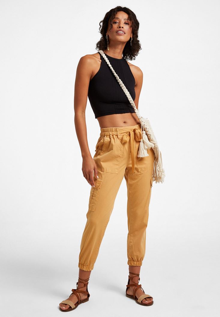 • Bayan Krem Beli Lastikli Kargo Pantolon