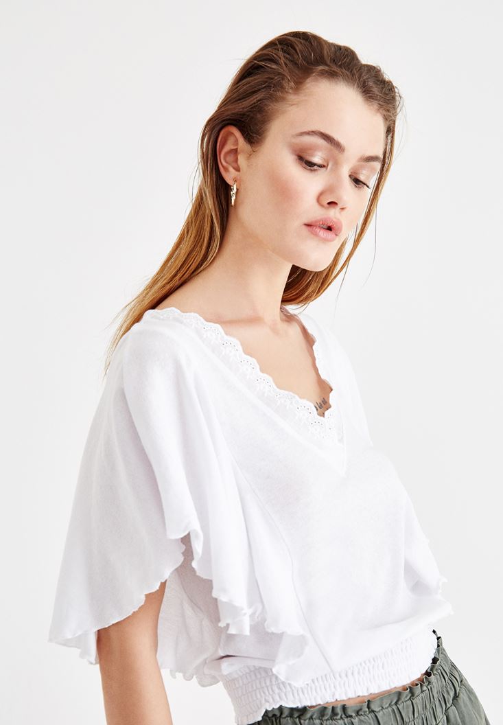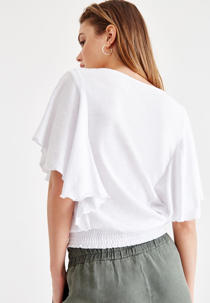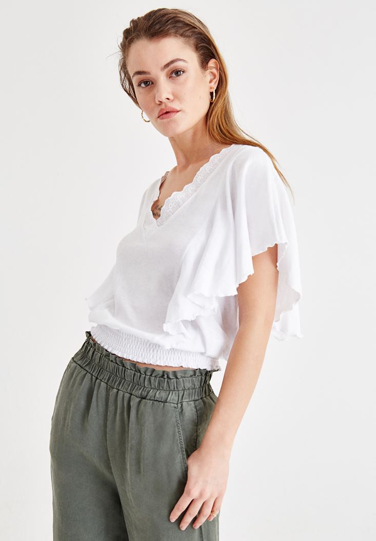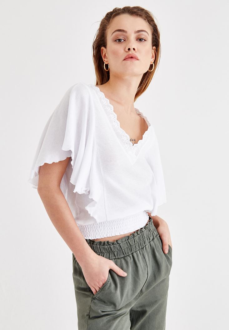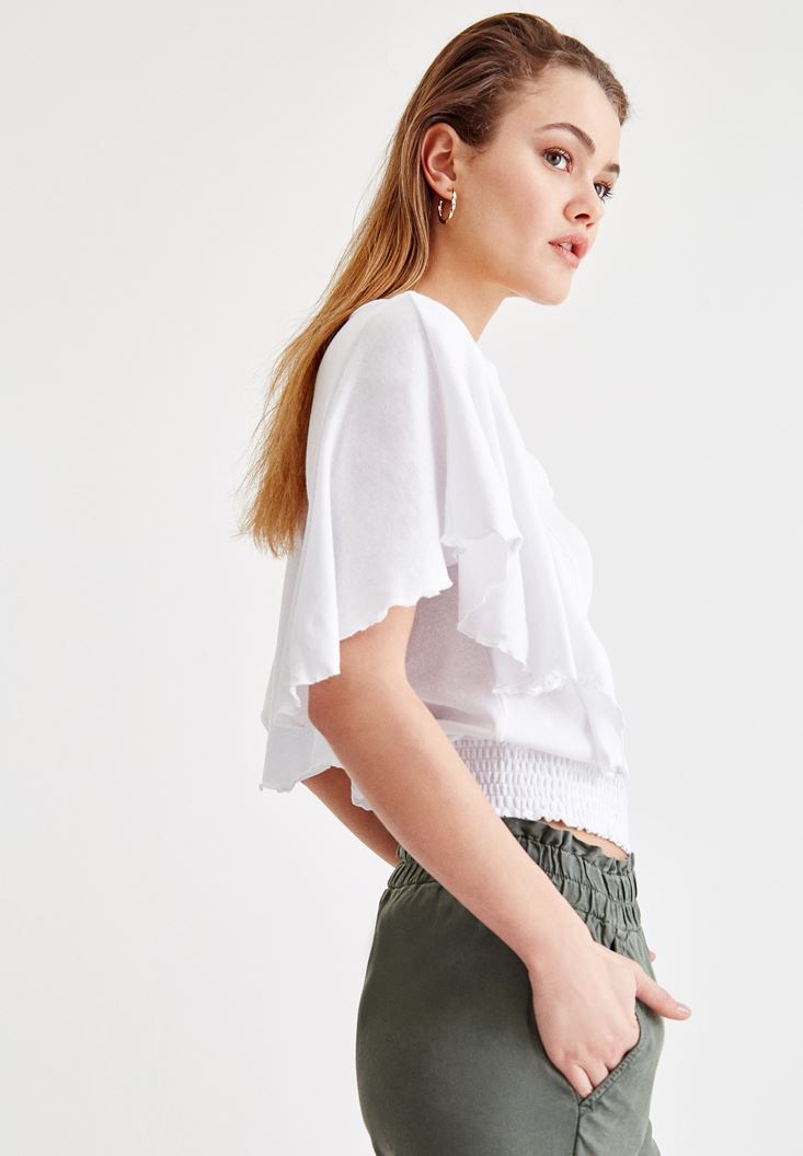 • Bayan Beyaz Beli Lastikli Kol Detaylı Bluz