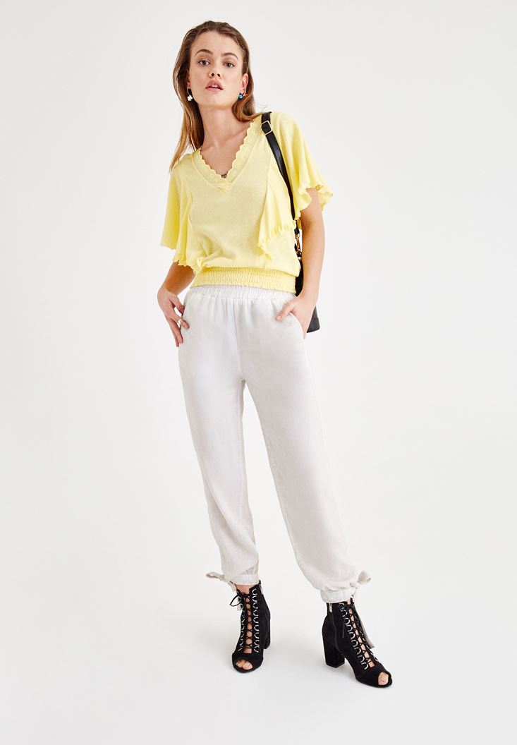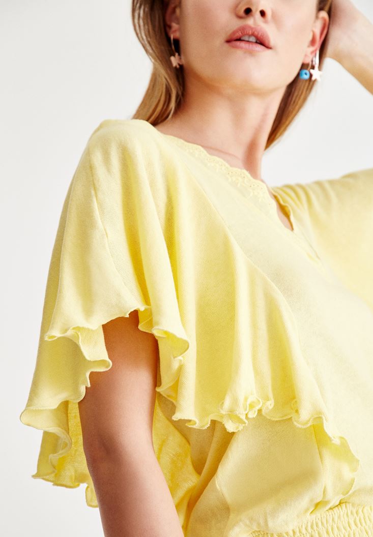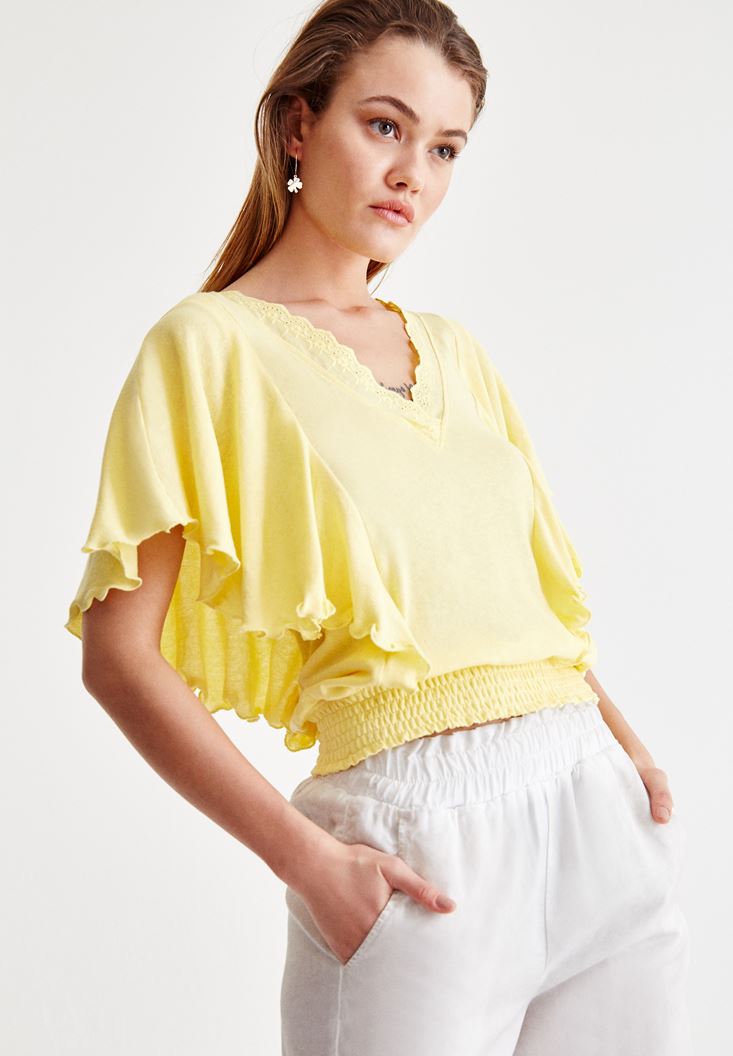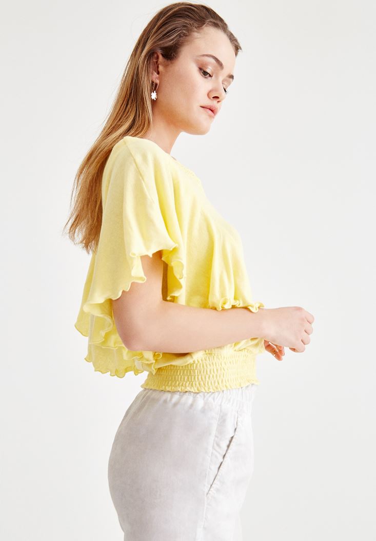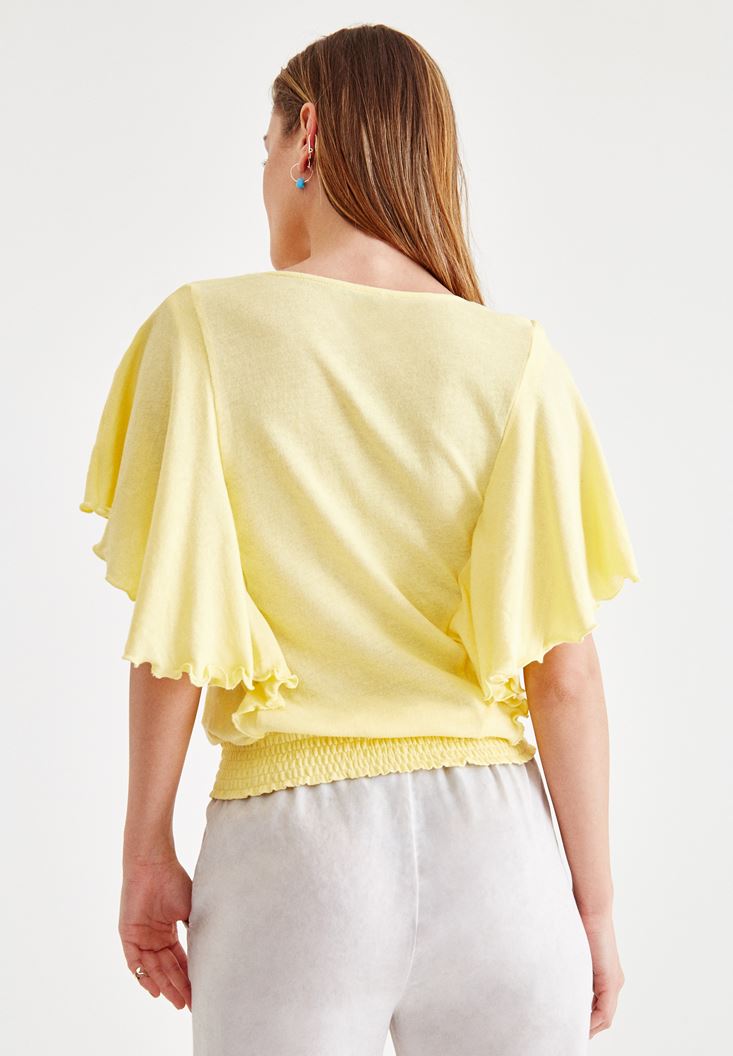 Sarı Beli Lastikli Kol Detaylı Bluz