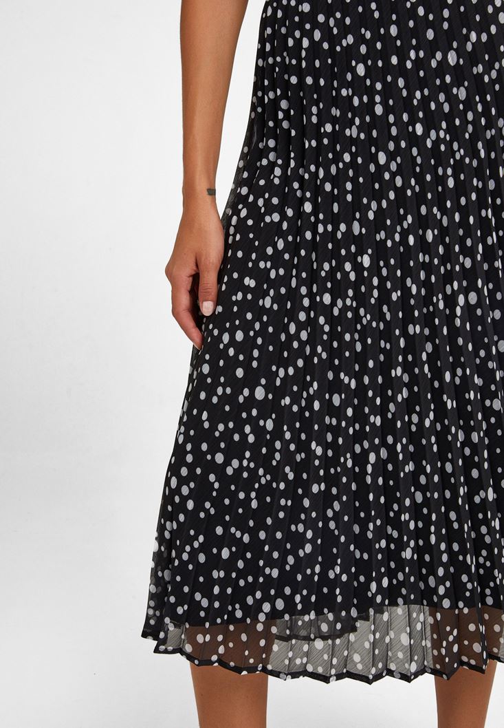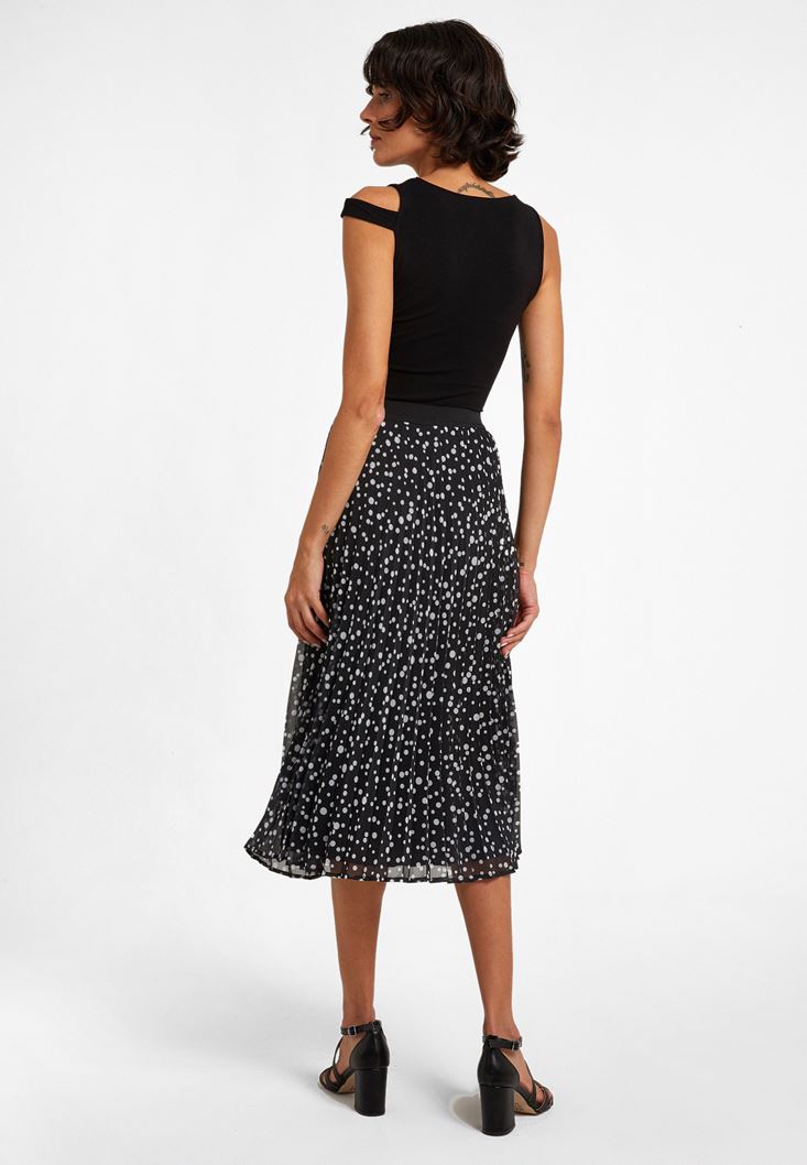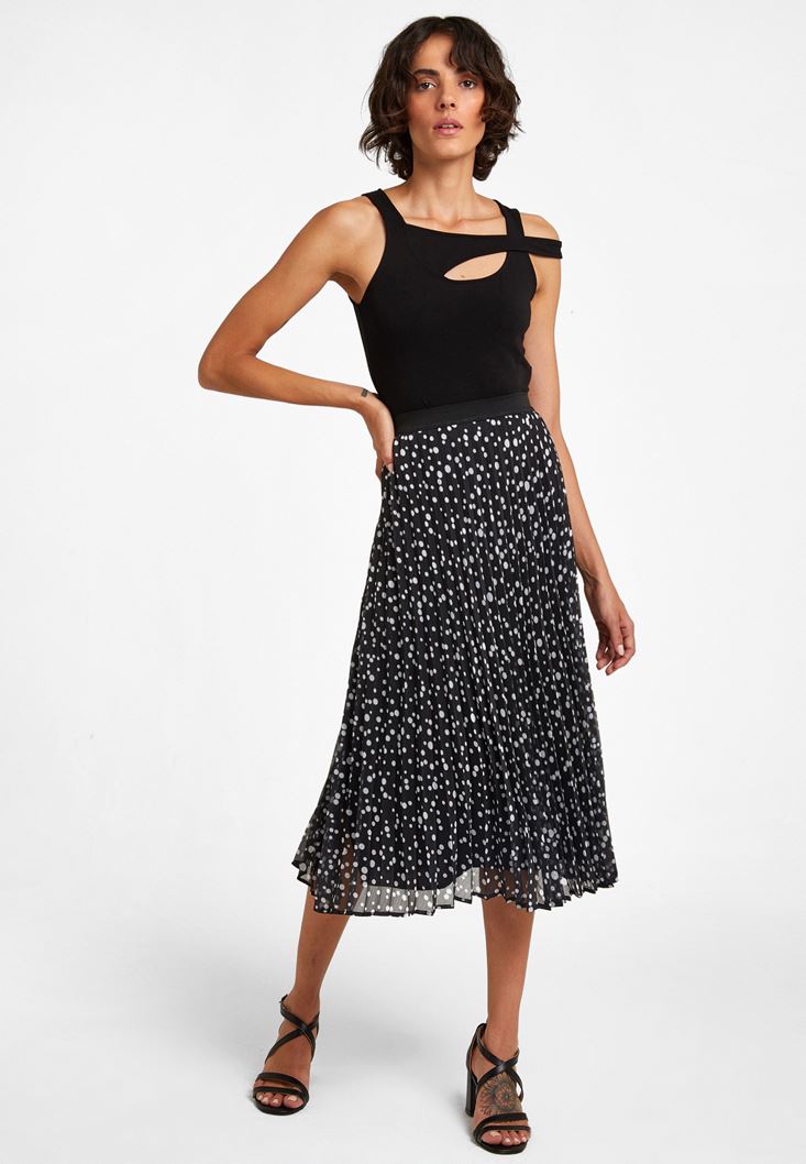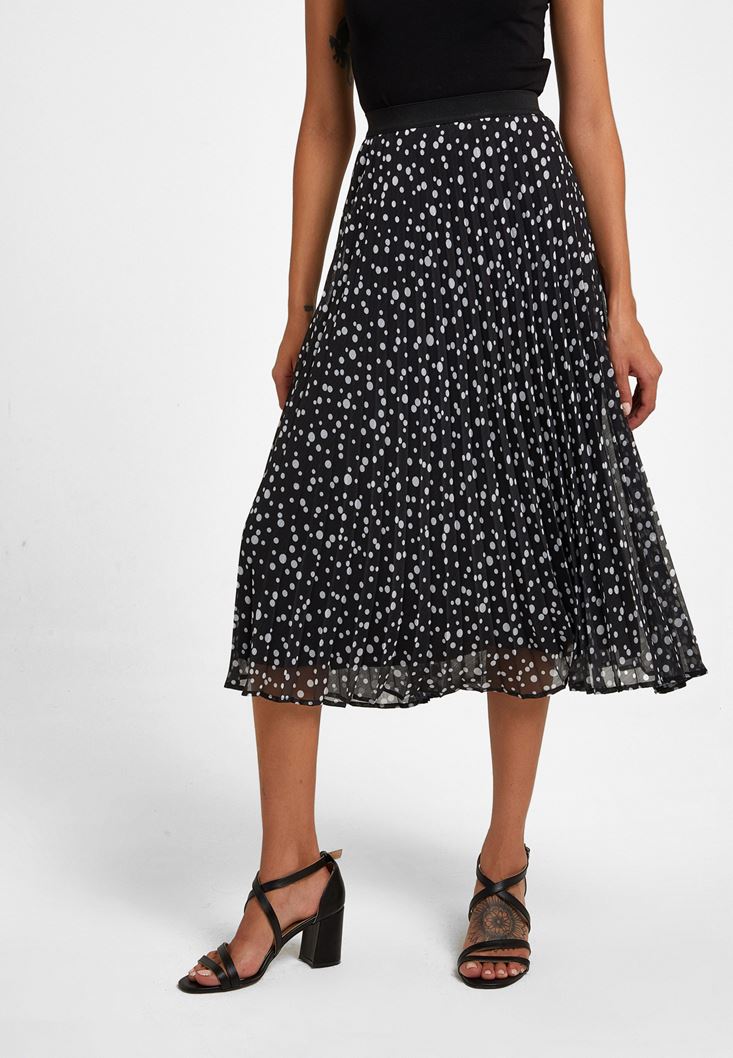 Beyaz Puantiye Beli Lastikli Midi Boy Etek