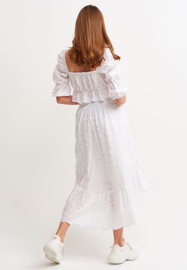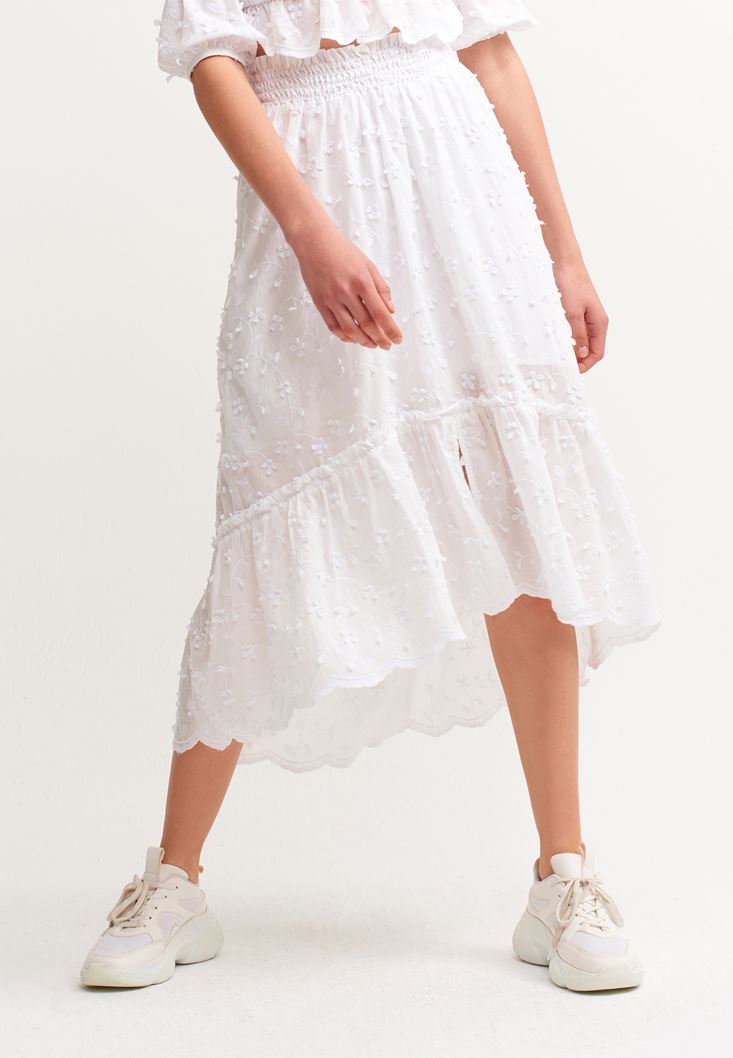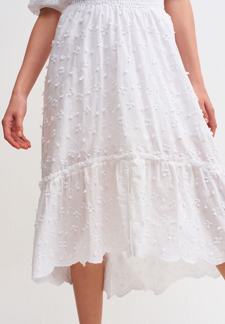 • Bayan Beyaz Beli Lastikli Midi Boy Etek