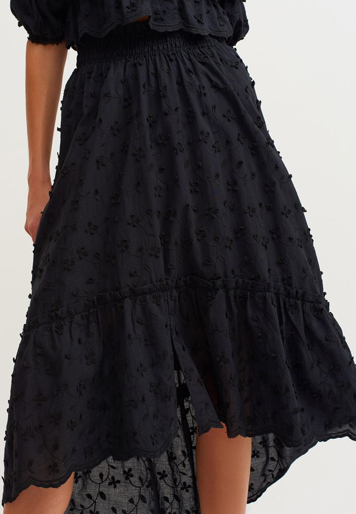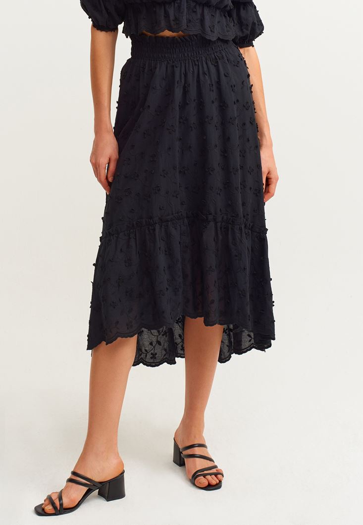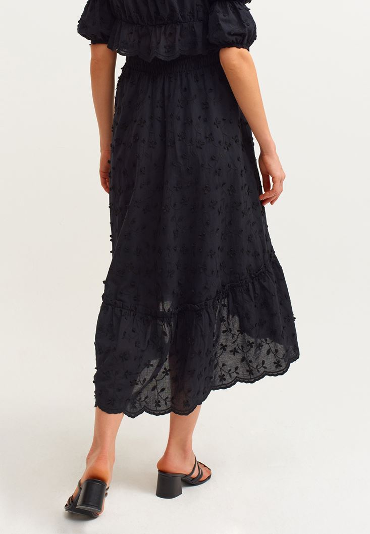 • Bayan Siyah Beli Lastikli Midi Boy Etek
