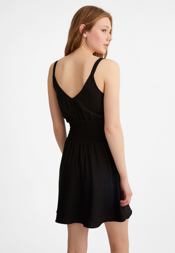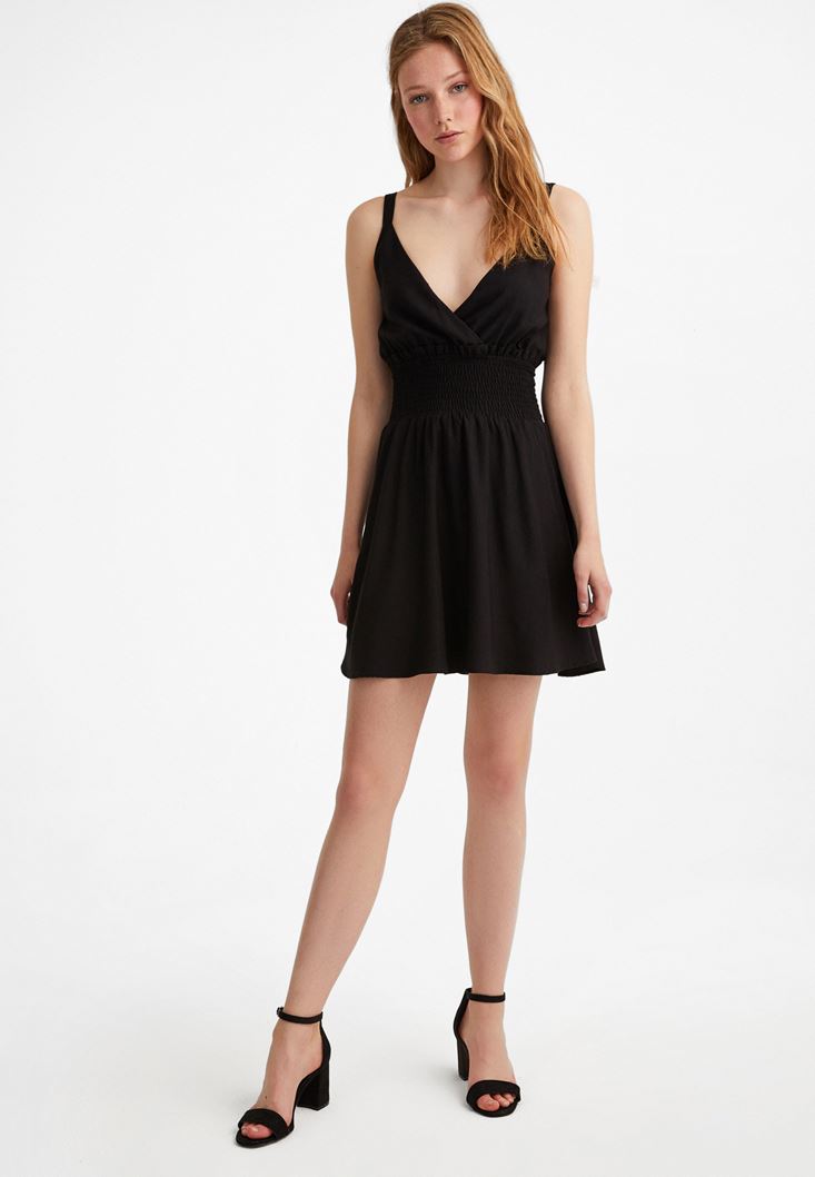 Siyah Beli Lastikli Mini Elbise