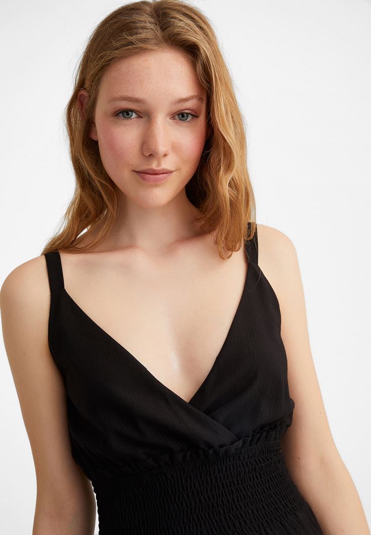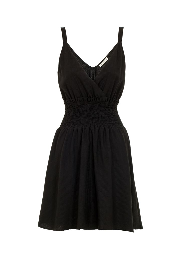 • Bayan Siyah Beli Lastikli Mini Elbise