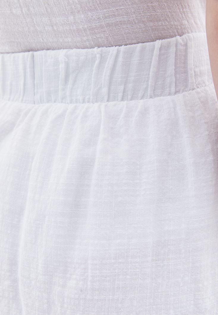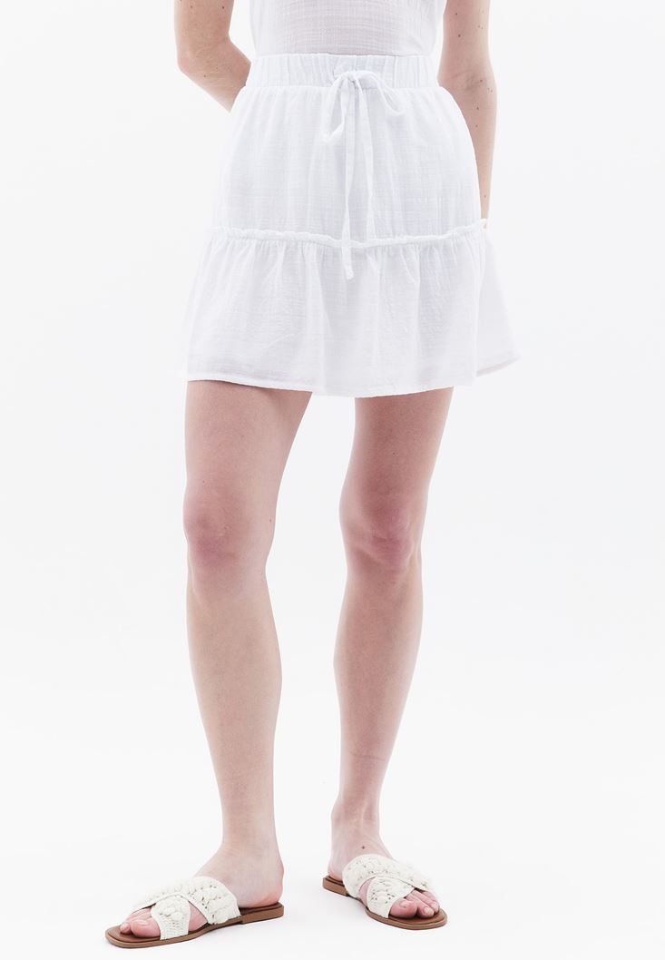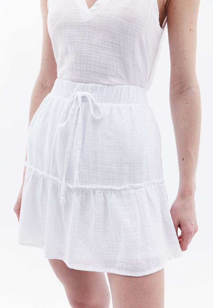 Beyaz Beli Lastikli Mini Etek
