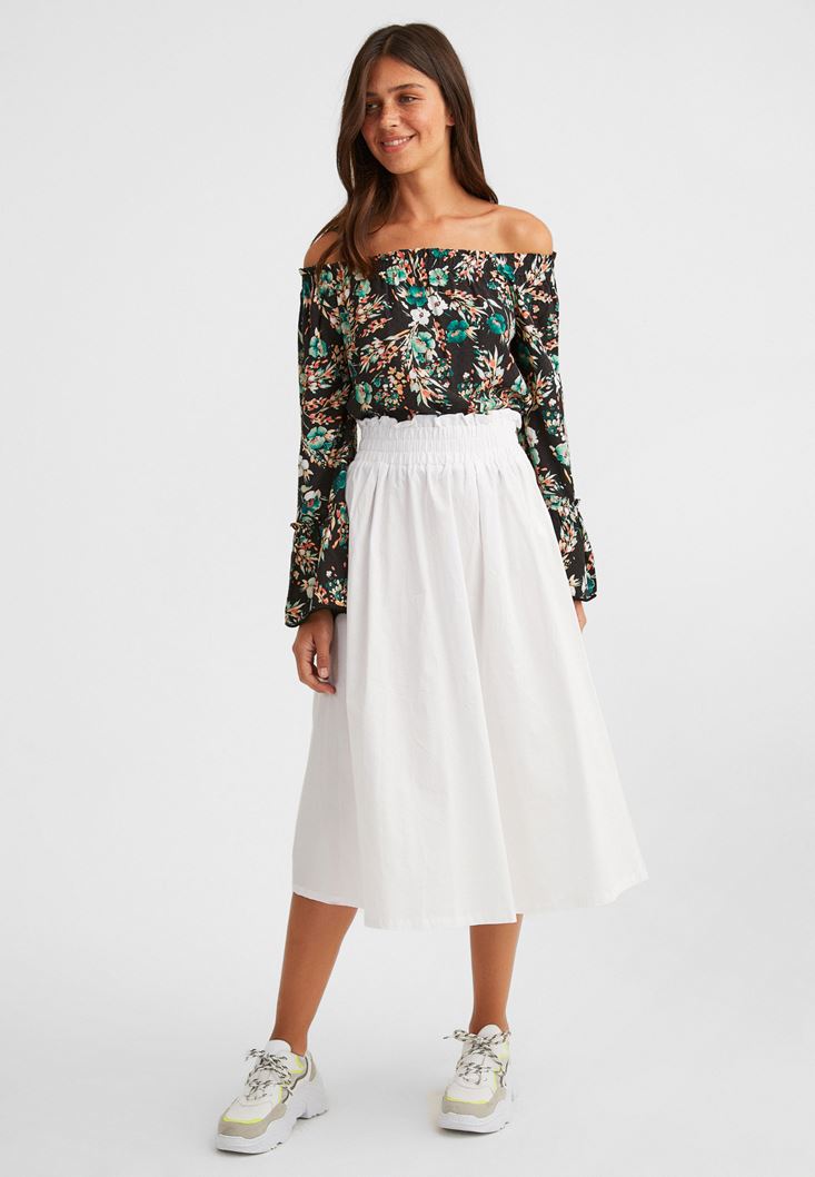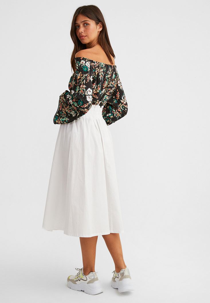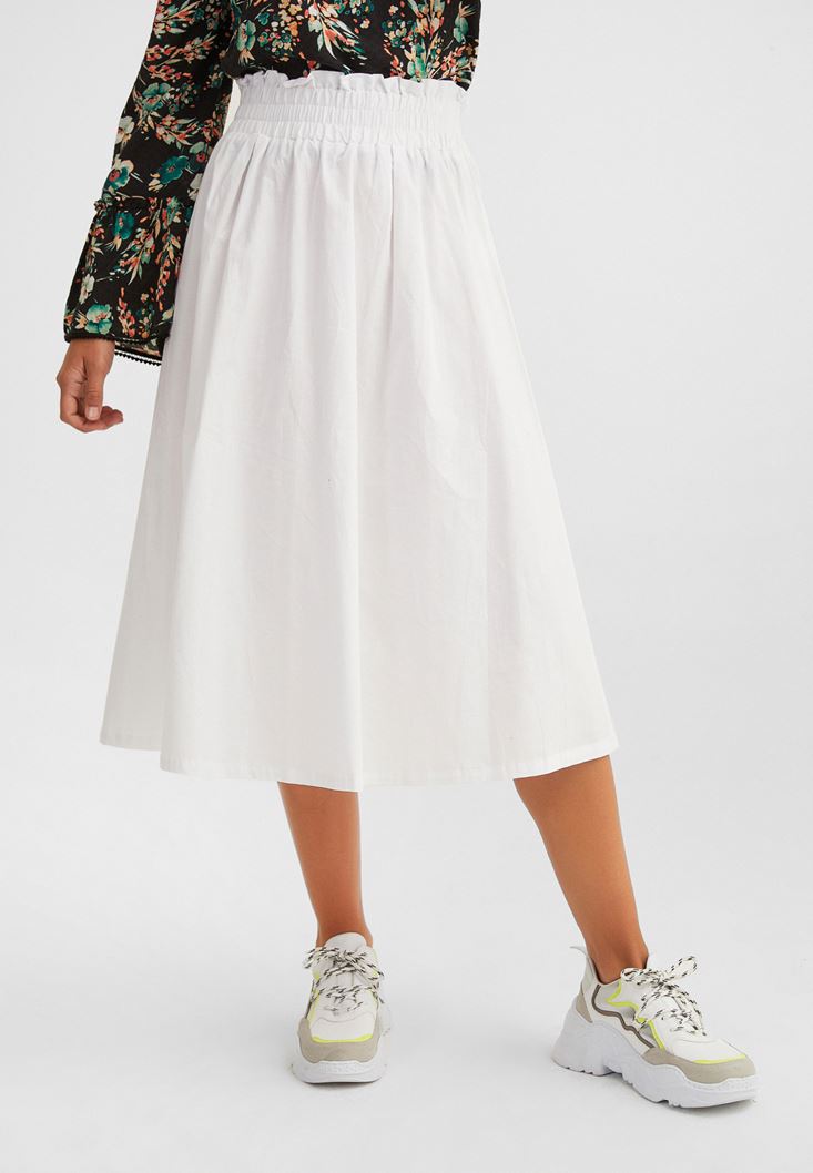 • Bayan Beyaz Beli Lastikli Pamuk Etek