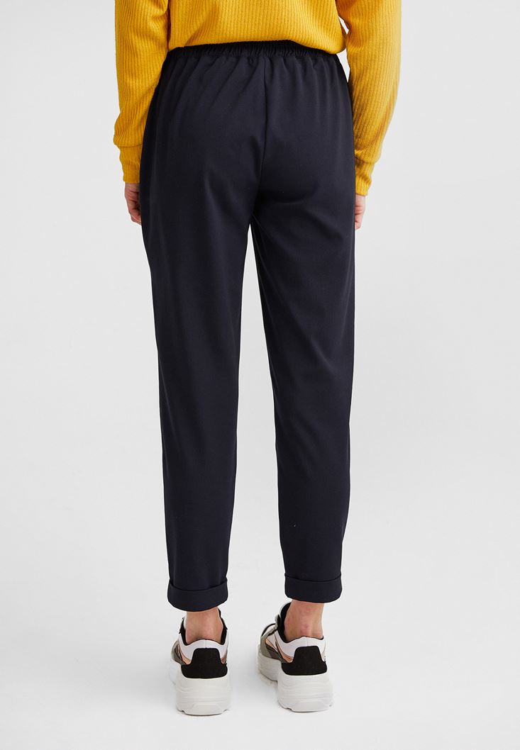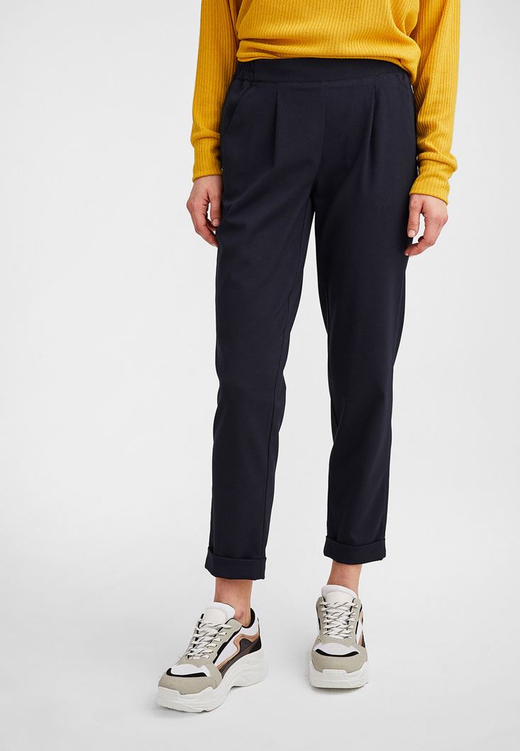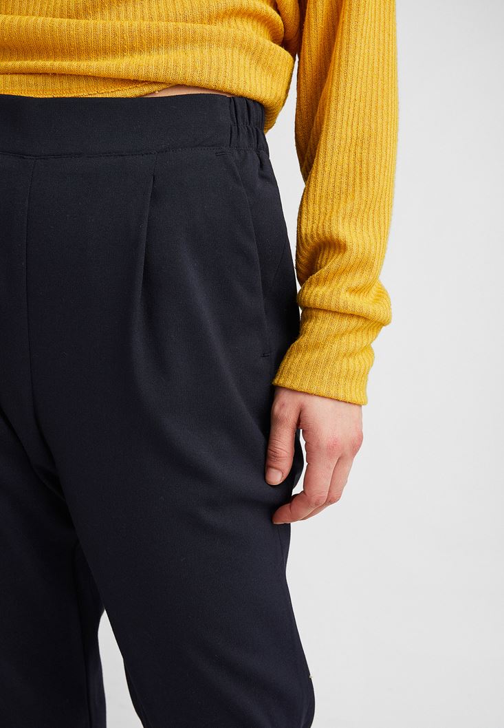 Lacivert Beli Lastikli Pileli Pantolon
