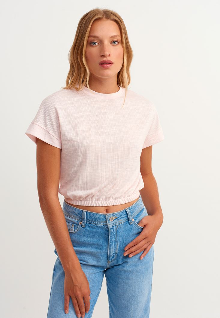 • Bayan Pembe Beli Lastikli Sıfır Yaka Tişört
