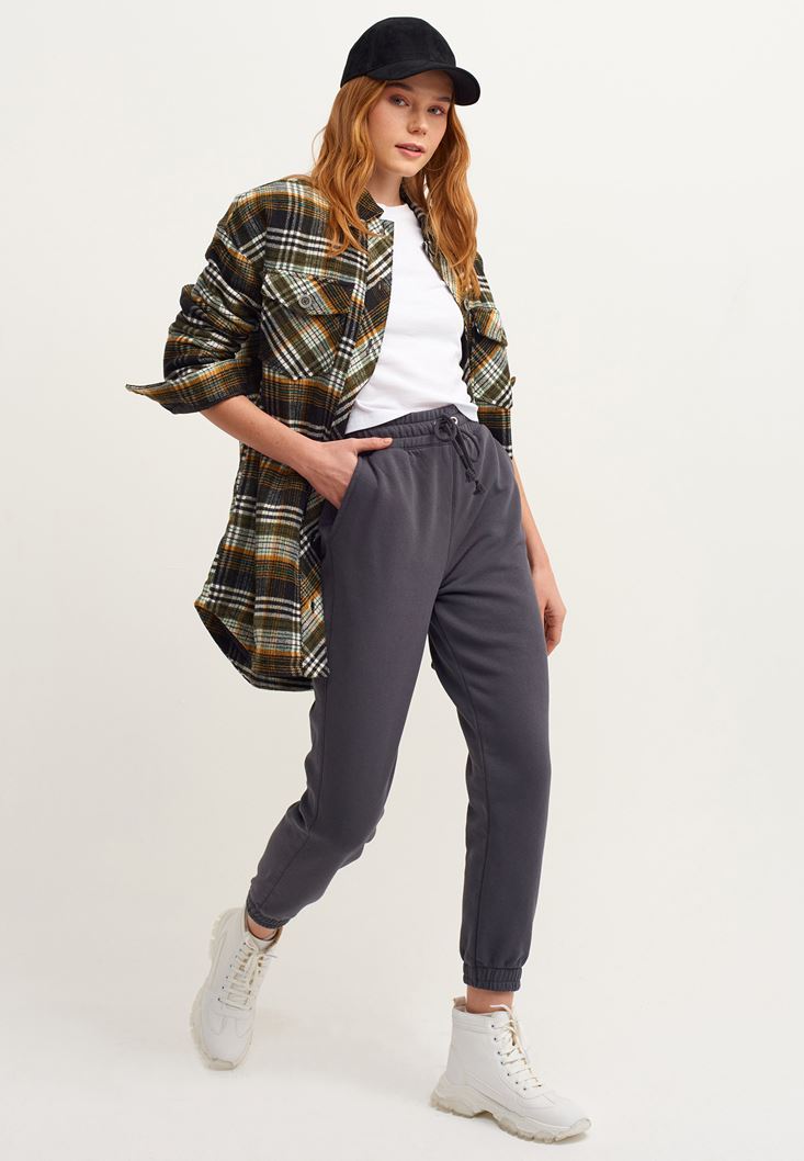 • Bayan Antrasit Beli Lastikli Sweat Jogger Pantolon