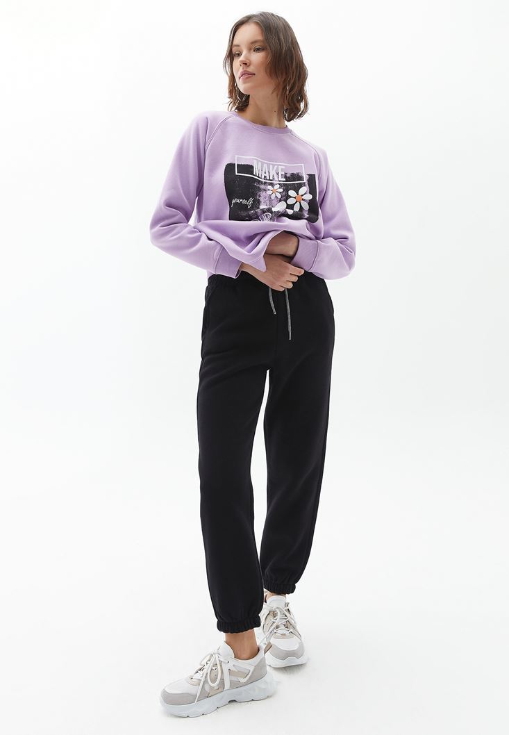 • Bayan Siyah Beli Lastikli Sweat Jogger Pantolon