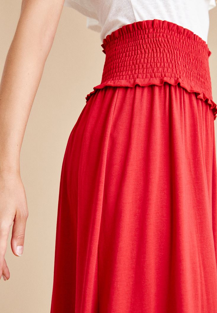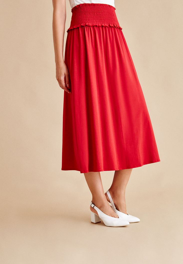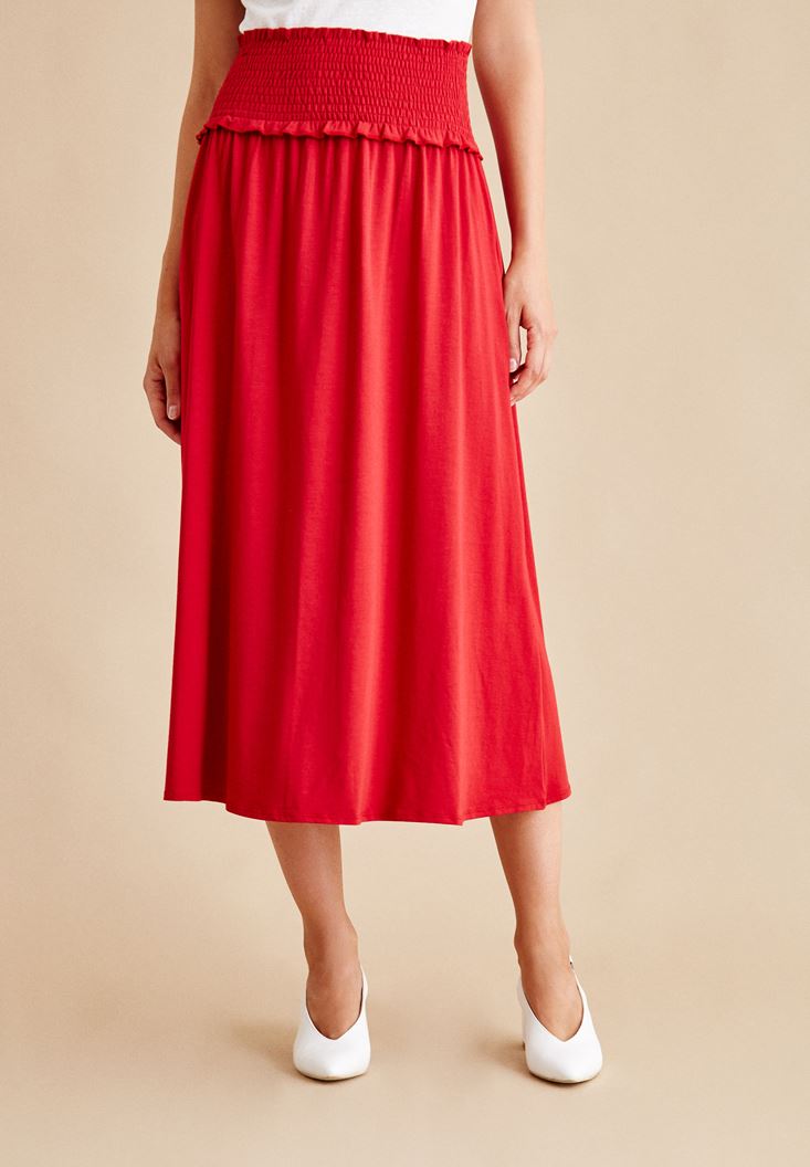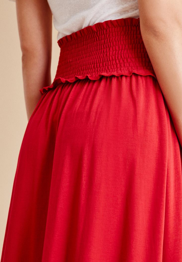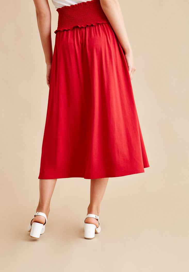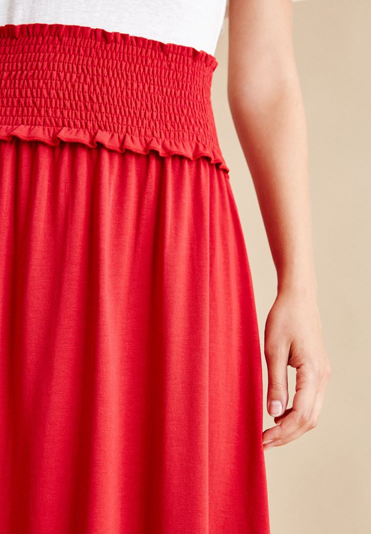 Kırmızı Beli Lastikli Uzun Etek