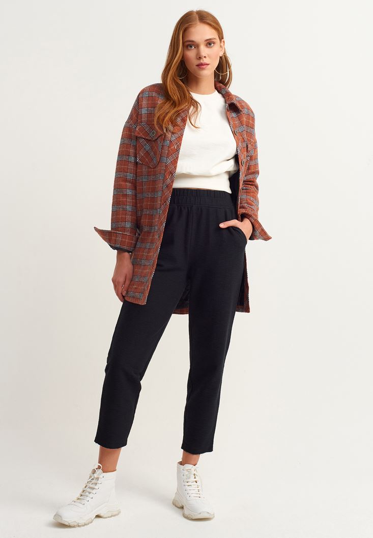 • Bayan Siyah Beli Lastikli ve Cepli Sweat Pantolon