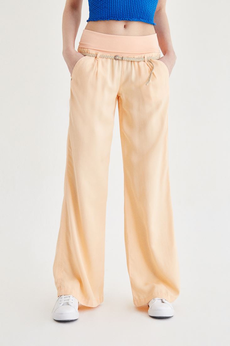 • Bayan Turuncu Beli Lastikli ve Kemerli Bol Pantolon