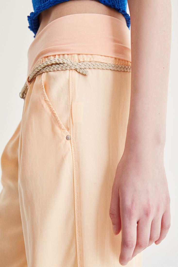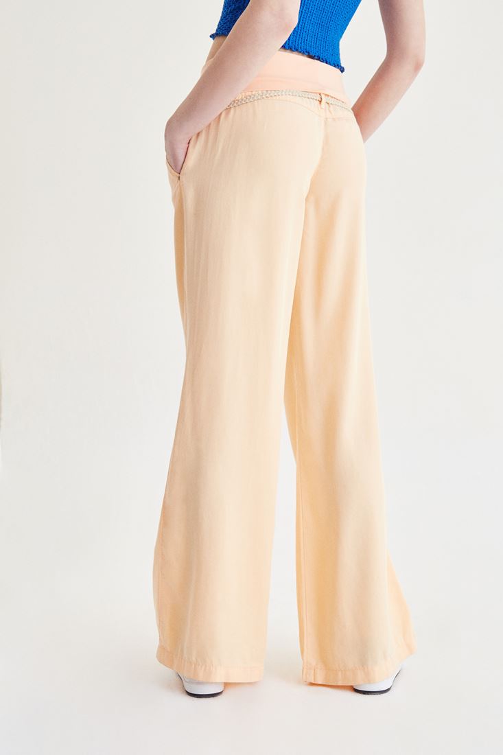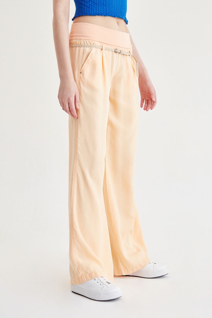 Turuncu Beli Lastikli ve Kemerli Bol Pantolon