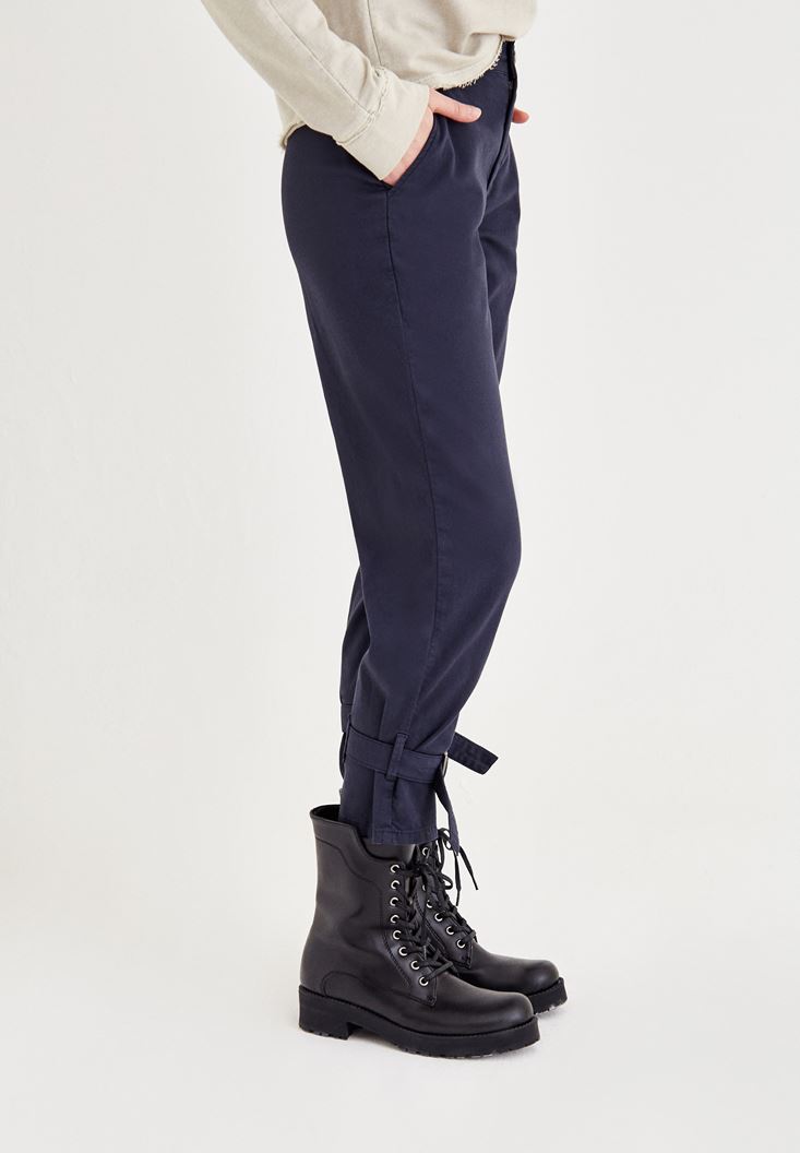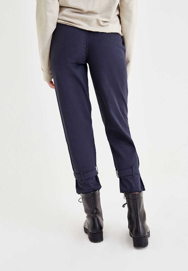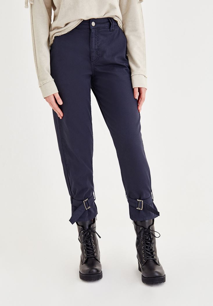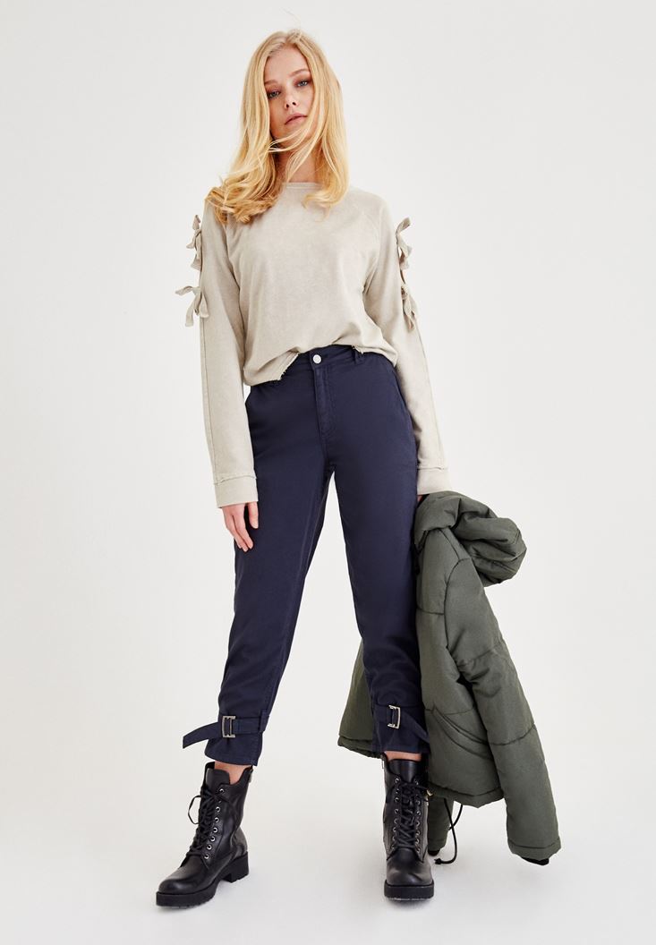 • Bayan Lacivert Bilek Detaylı Bol Pantolon